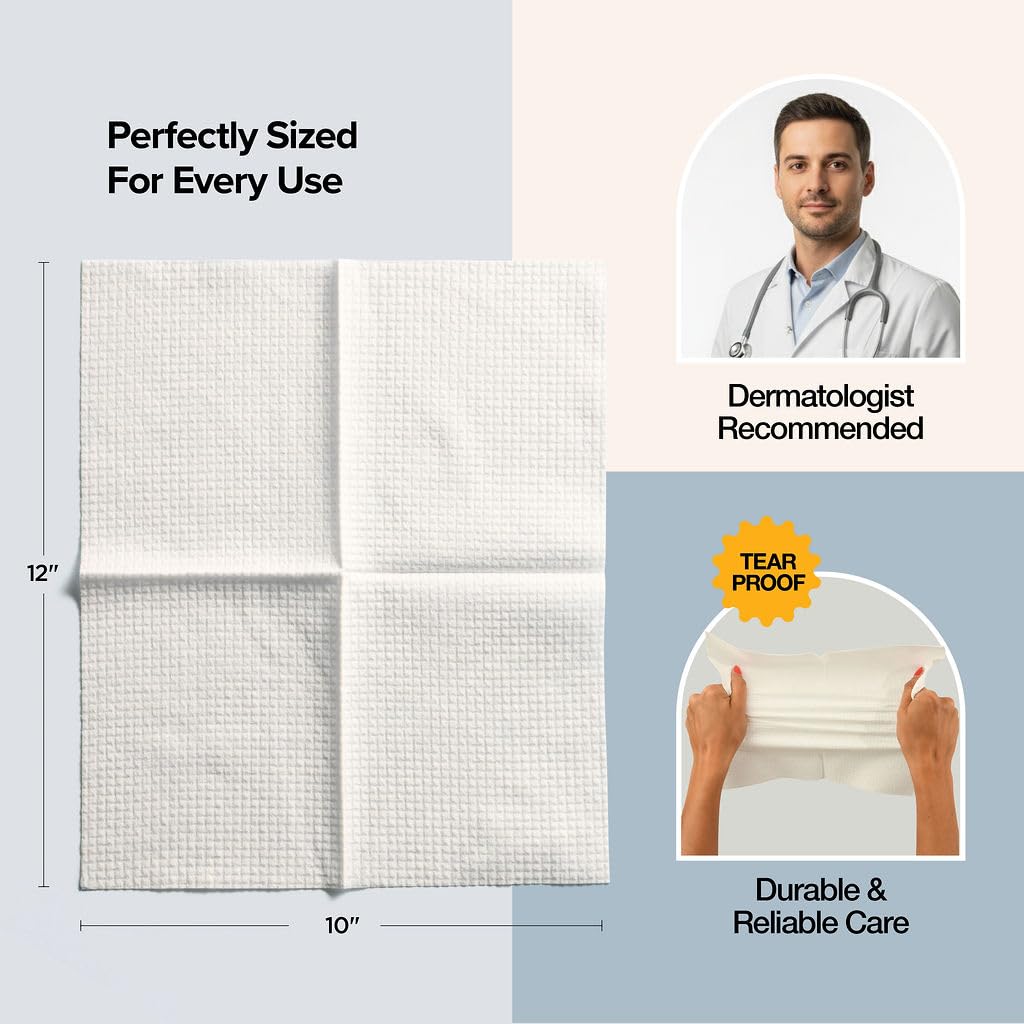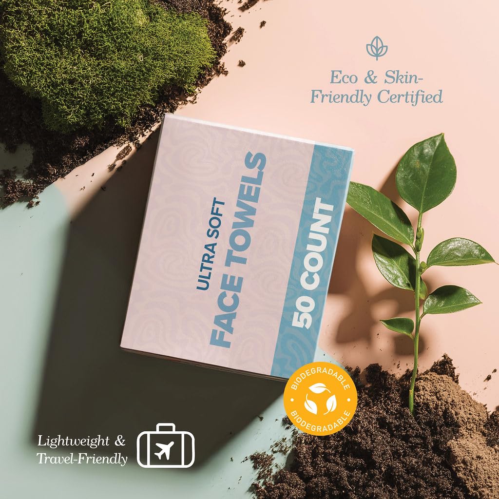 Ultra Soft Disposable Face Towels for Women – Biodegradable, Thick & Gentle on Sensitive Skin, 10x12 Cleansing & Makeup Removal, 50 Pack