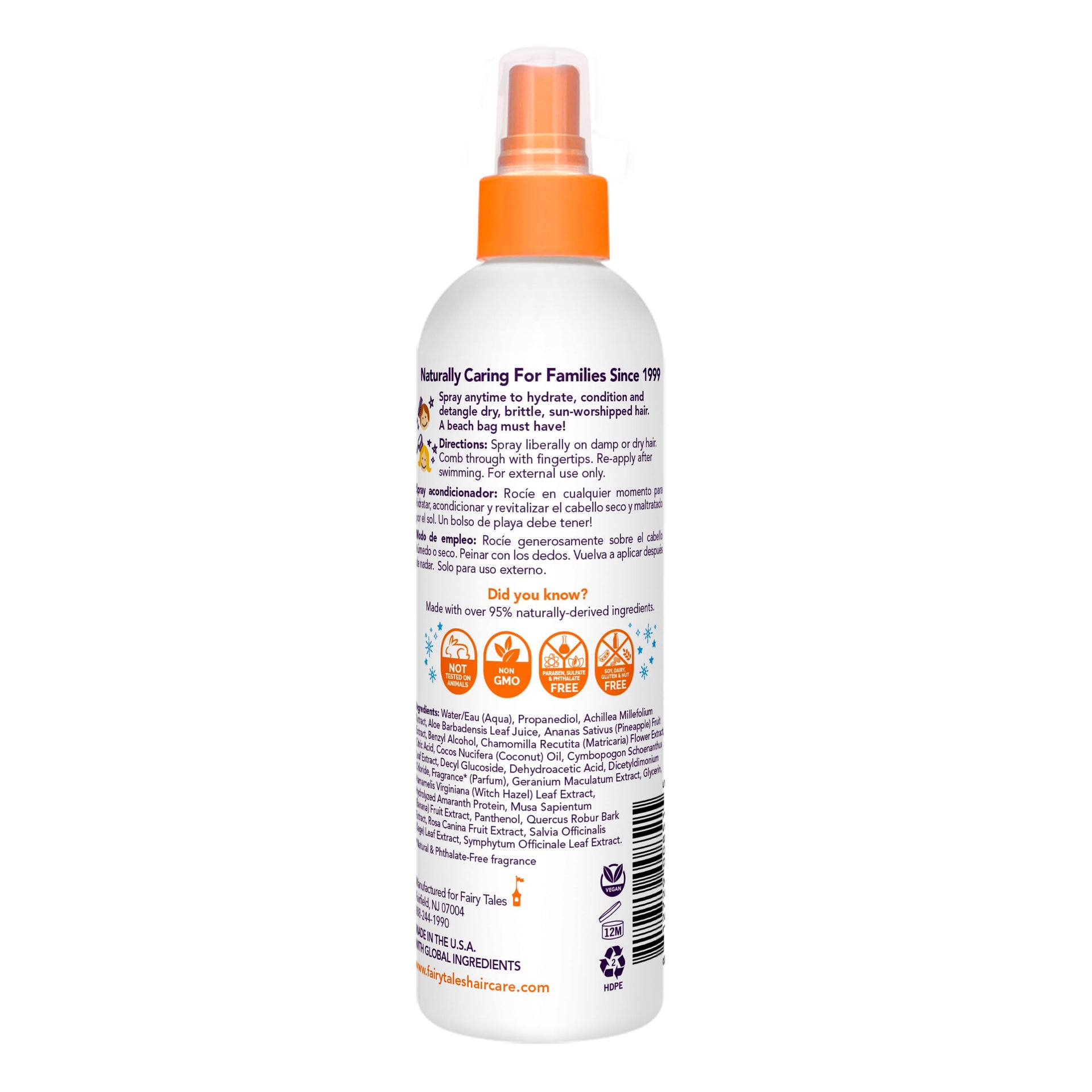 - Use it before you swim to protect the hair and after to detangle and replenish moisture even after hours of swimming in salt water or chlorine pools. The Fairy Tales Sun & Swim line is specially formulated for treatment of kids summertime hair. Natural ingredients like coconut oil and banana leaf extracts protect, hydrate and replenish dry, brittle, sun damaged hair.