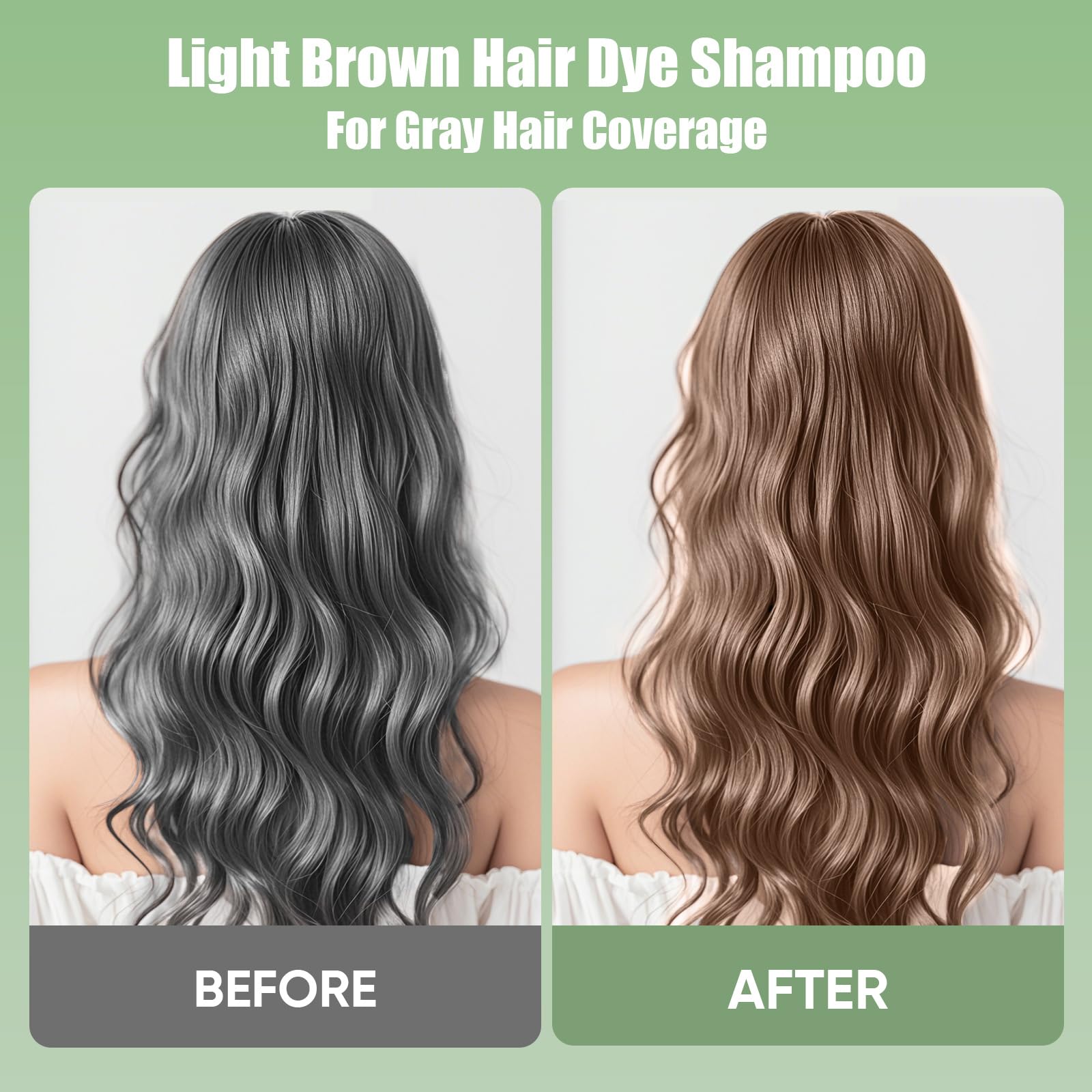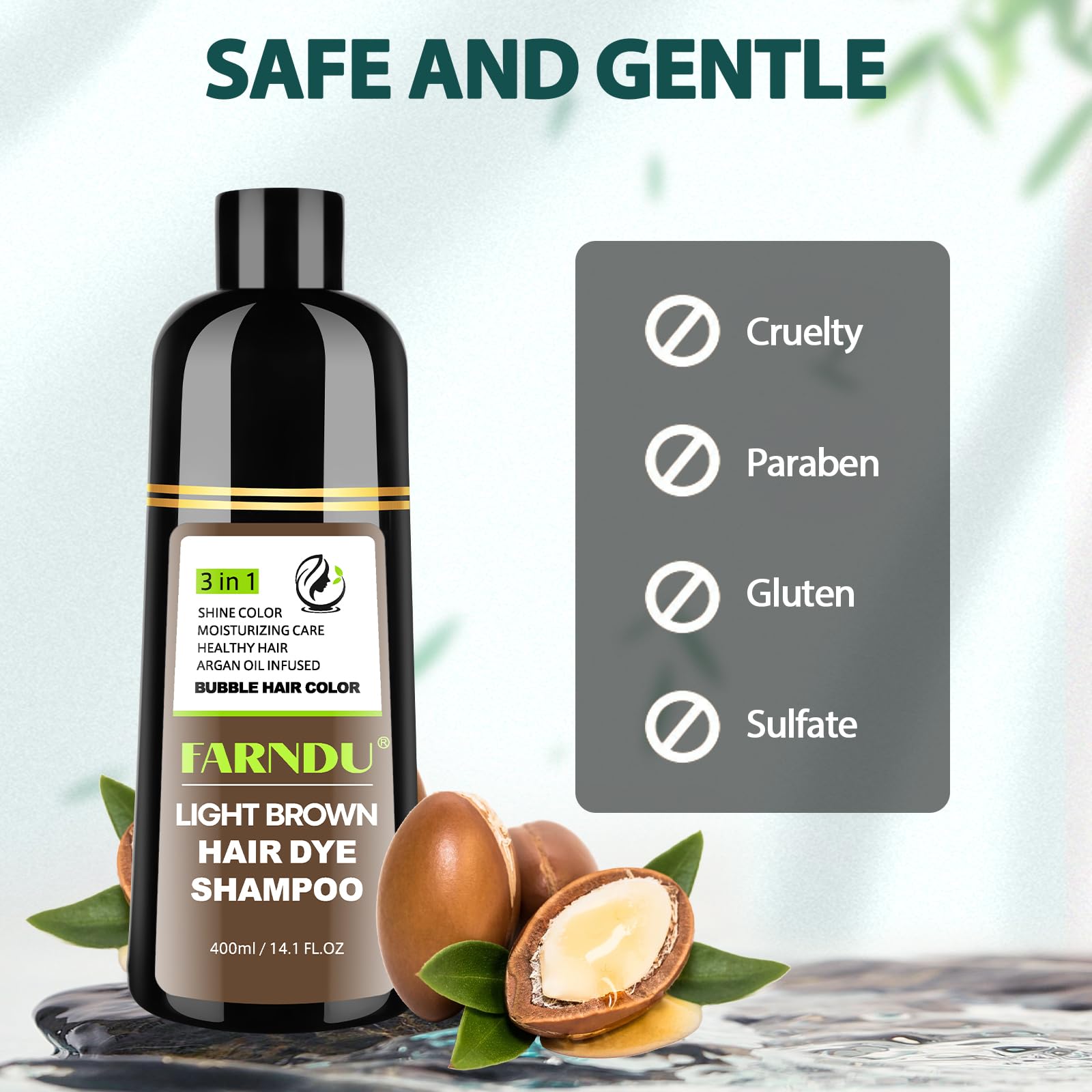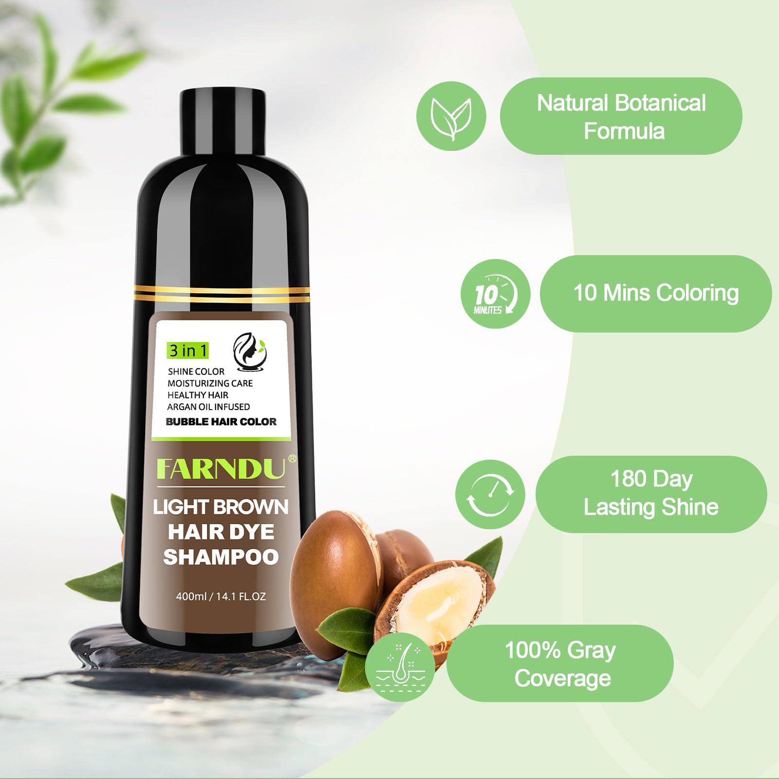 FARNDU 3-in-1 Light Brown Hair Dye Shampoo with Argan Oil – Covers Gray in 10-15 Min, Long-Lasting Natural Color for Men & Women, Up to 6 Months