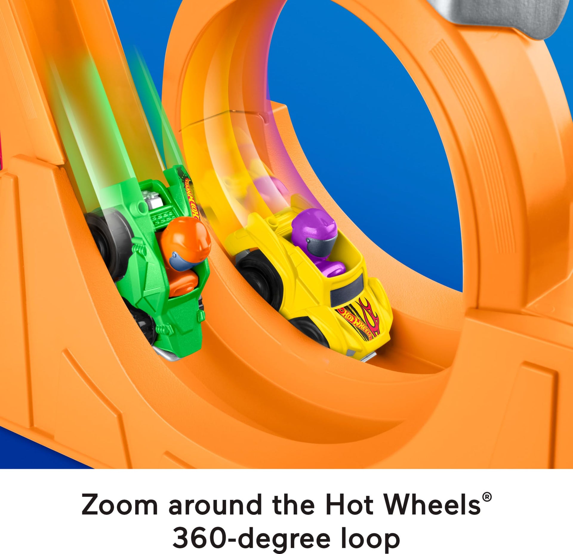 Fisher-Price Little People Toddler Toy Hot Wheels Spiral Stunt Speedway Race Track Playset with 2 Cars for Pretend Play Kids Ages 18+ Months