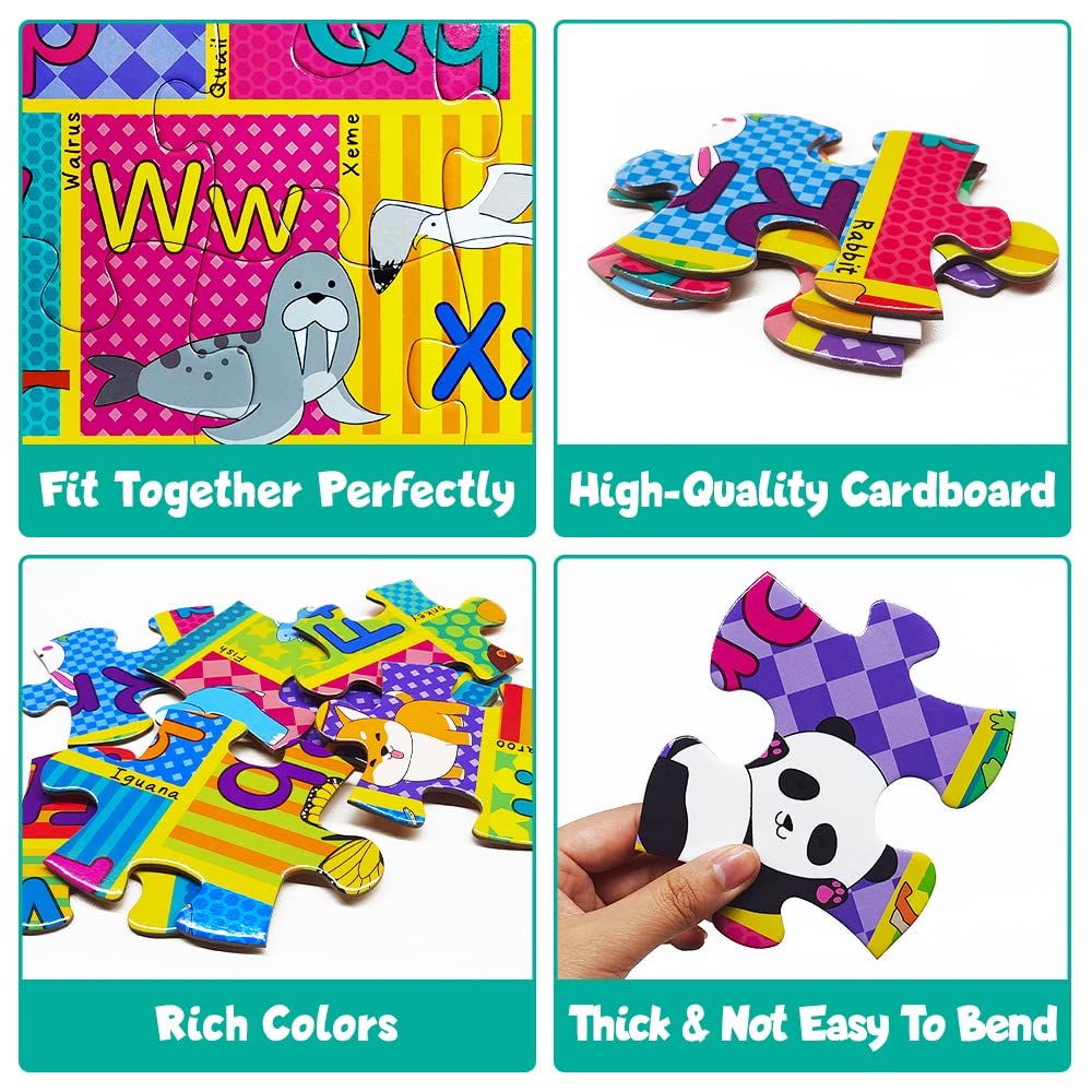 - 【Durable & Safe Material】Toddlers' safety always comes first. Our Alphabet Letter Puzzle are made of high-quality cardboard and printed with non-toxic inks, the kid's puzzle is in compliance with international safety standards. The pattern on the surface is made of high-quality stickers, non-toxic and tasteless.