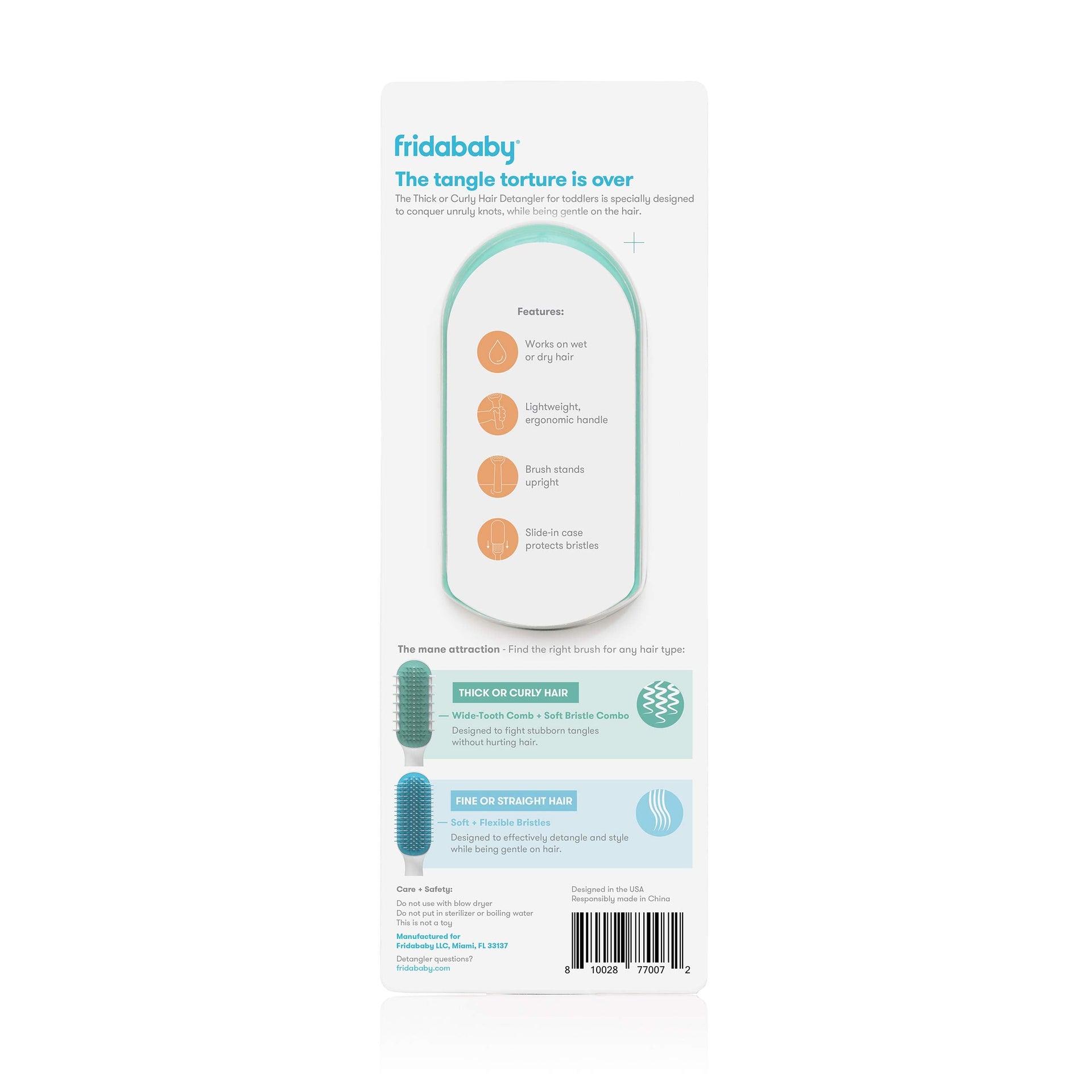 Frida Baby Thick & Curly Hair Detangler Brush for Kids & Toddlers – No-Tear Knot Remover with Comb Teeth & Bristle Design, White/Blue, 1 Ct