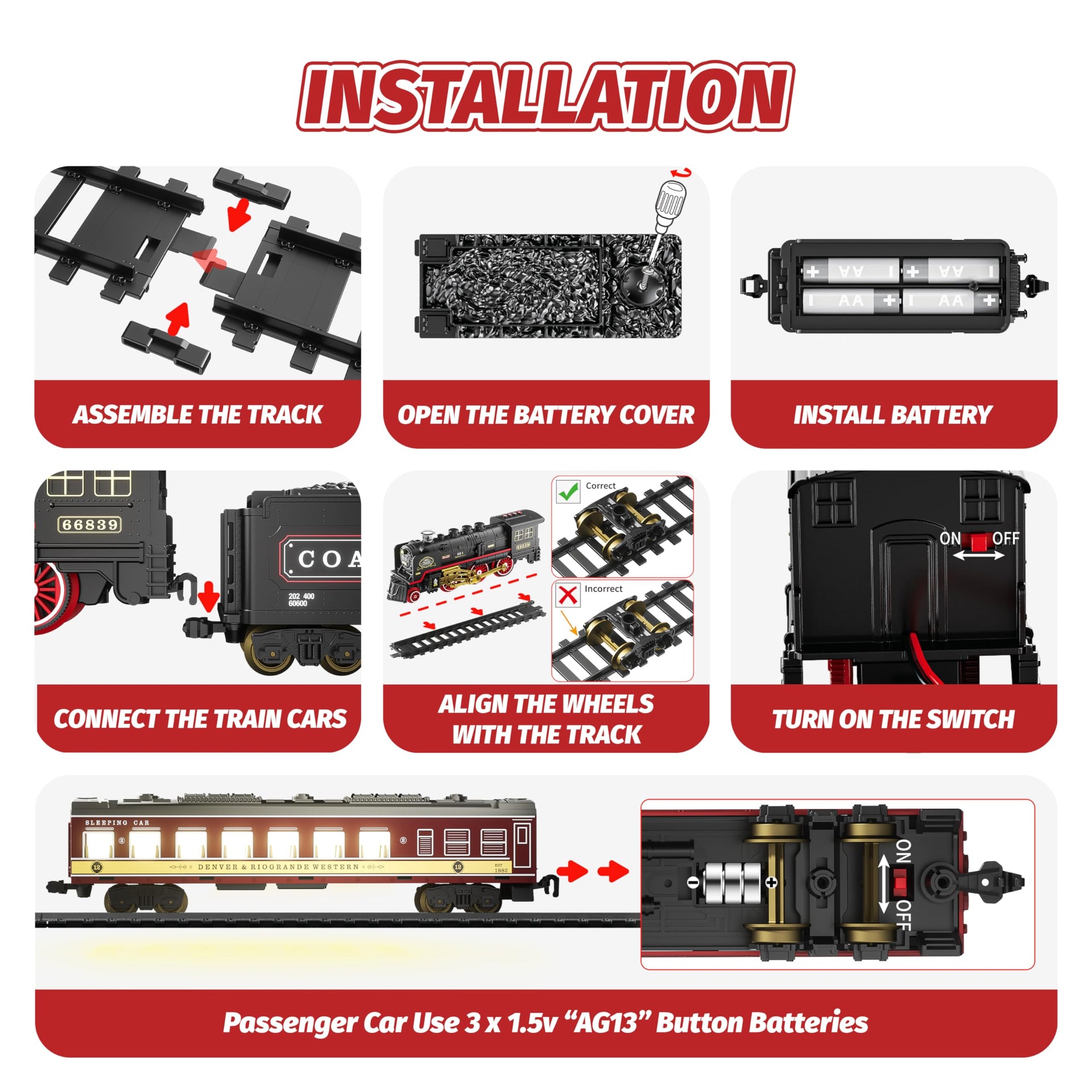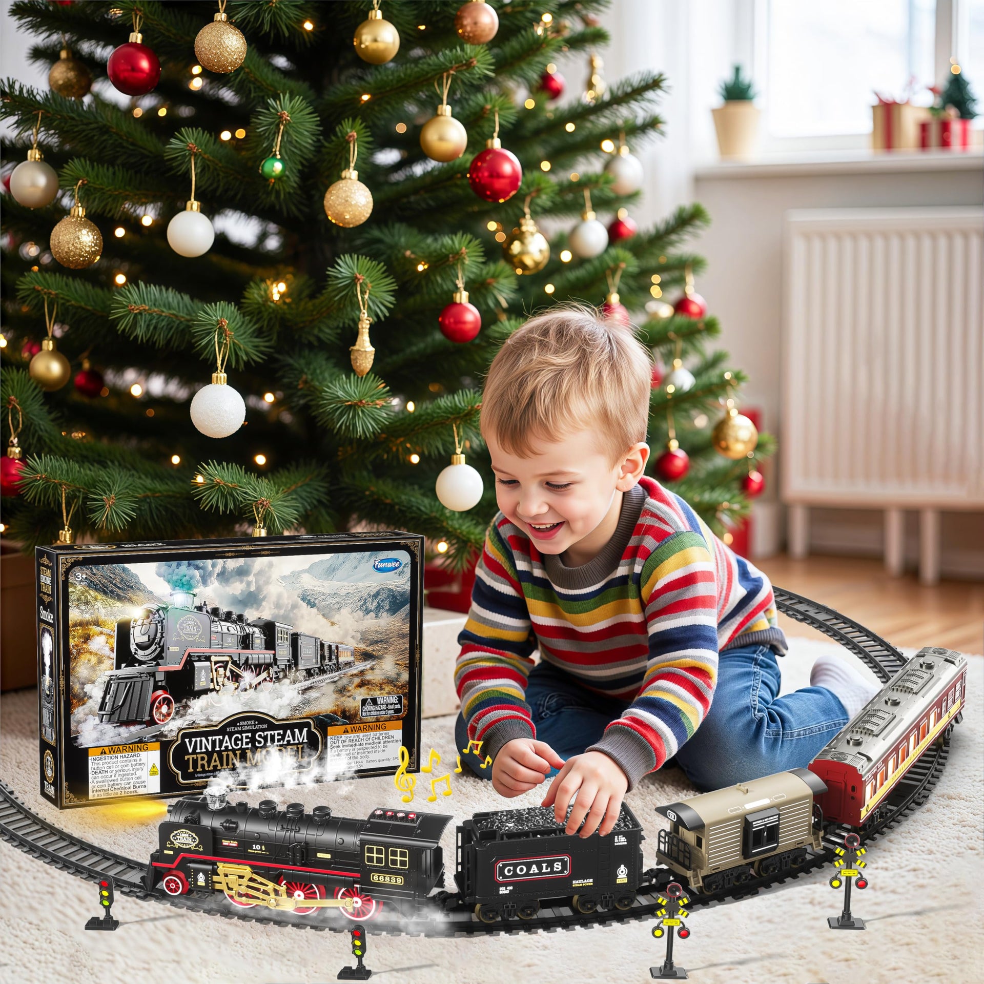 Funwee Electric Train Set with Smoke, Lights & Sounds – Classic Locomotive Train Toy with Track for Kids, Christmas Tree Decoration, Ages 3–7+