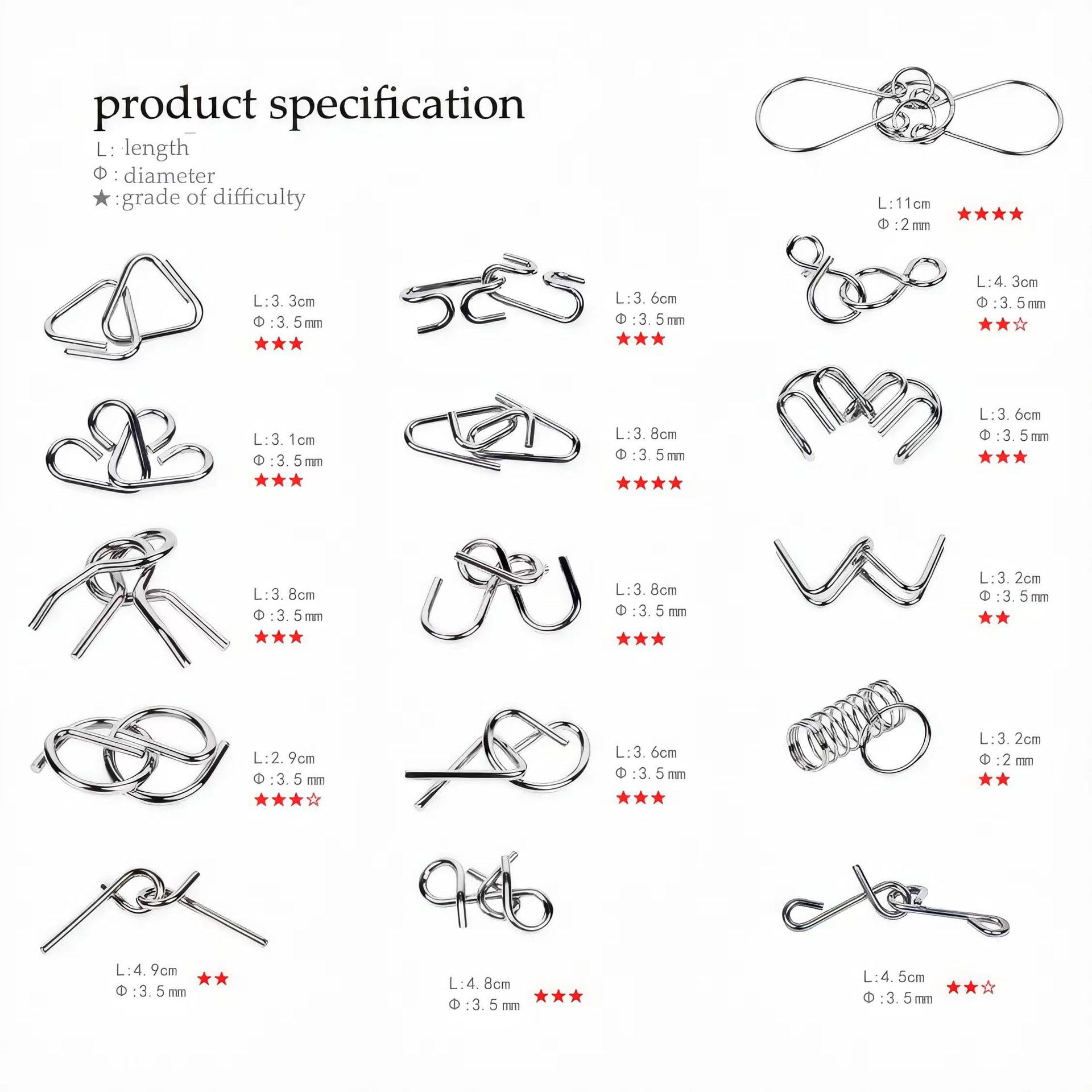 GEKELI 24-Piece Metal Wire Puzzle Set with Pouch – Brain Teasers, IQ Challenge, Interlock & Unlock Games, Magic Trick Toy for Kids & Adults