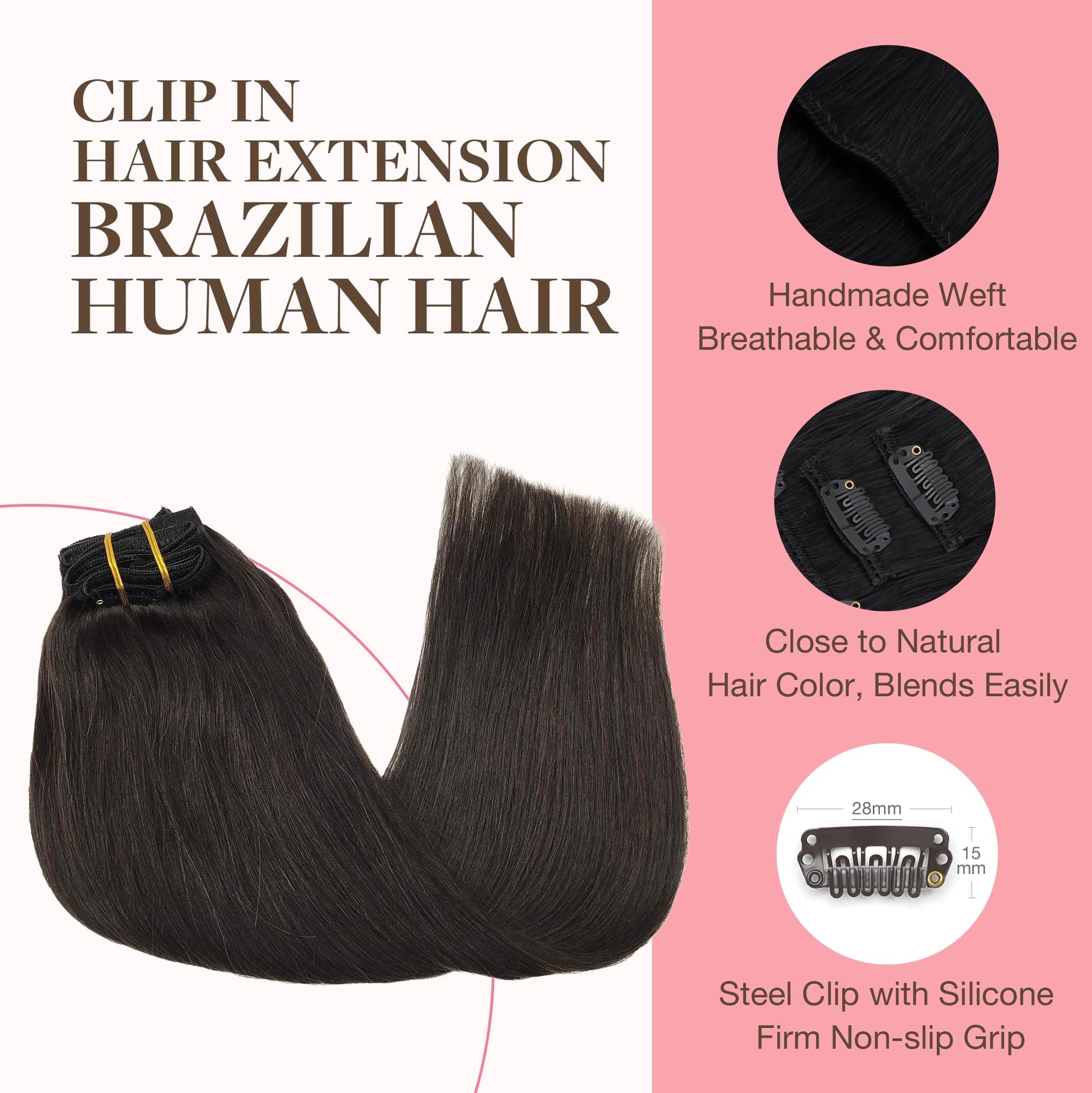 GOO GOO Clip in Hair Extensions Real Human Hair, Remy Human Hair Extensions Clip ins for Women, Natural Human Hair, 18inch 120g 7Pcs, 2 Dark Brown