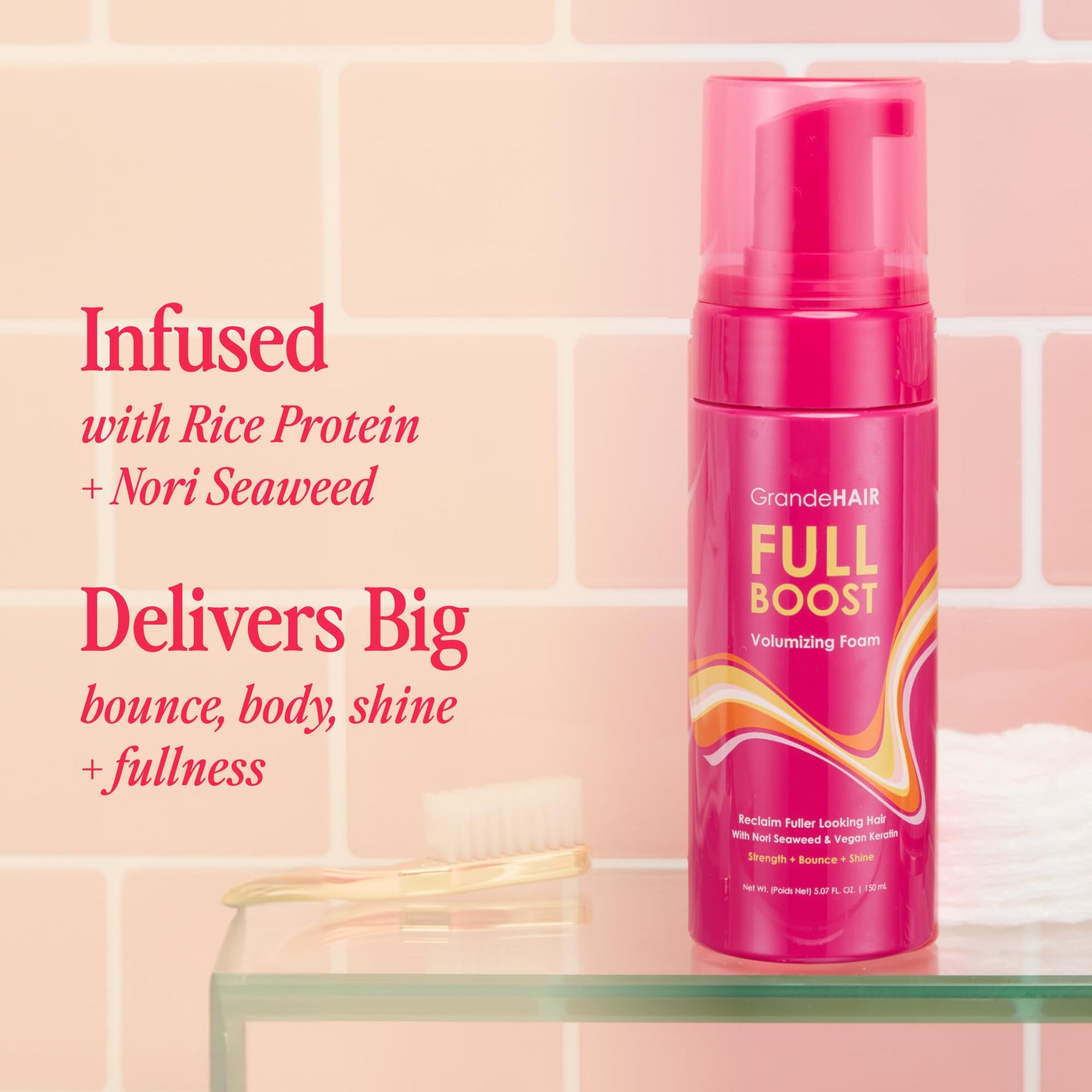 Grande Cosmetics GrandeHAIR Volumizing Foam – Instant Volume & Fuller-Looking Hair, Defines Curls, Non-Sticky Mousse, Travel Size 1.5 oz