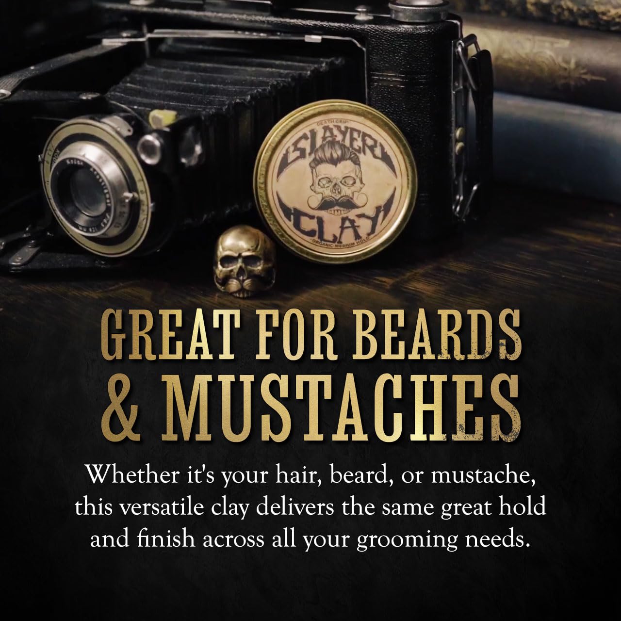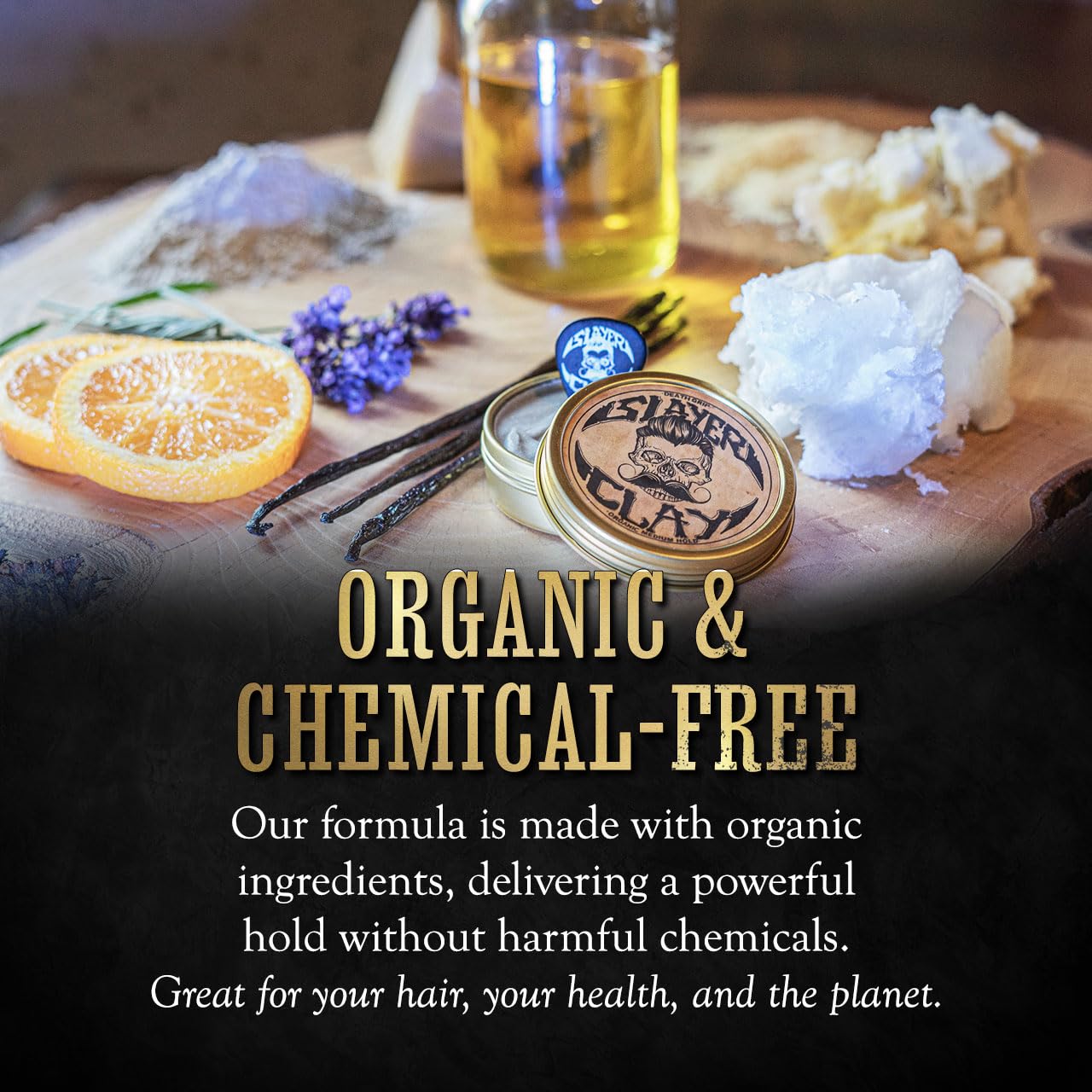 Death Grip Slayer Hair Clay for Men – Organic Medium Hold Styling Clay with Bentonite – Matte Finish, Non-Greasy, Anti-Dandruff, 2 Oz Tin