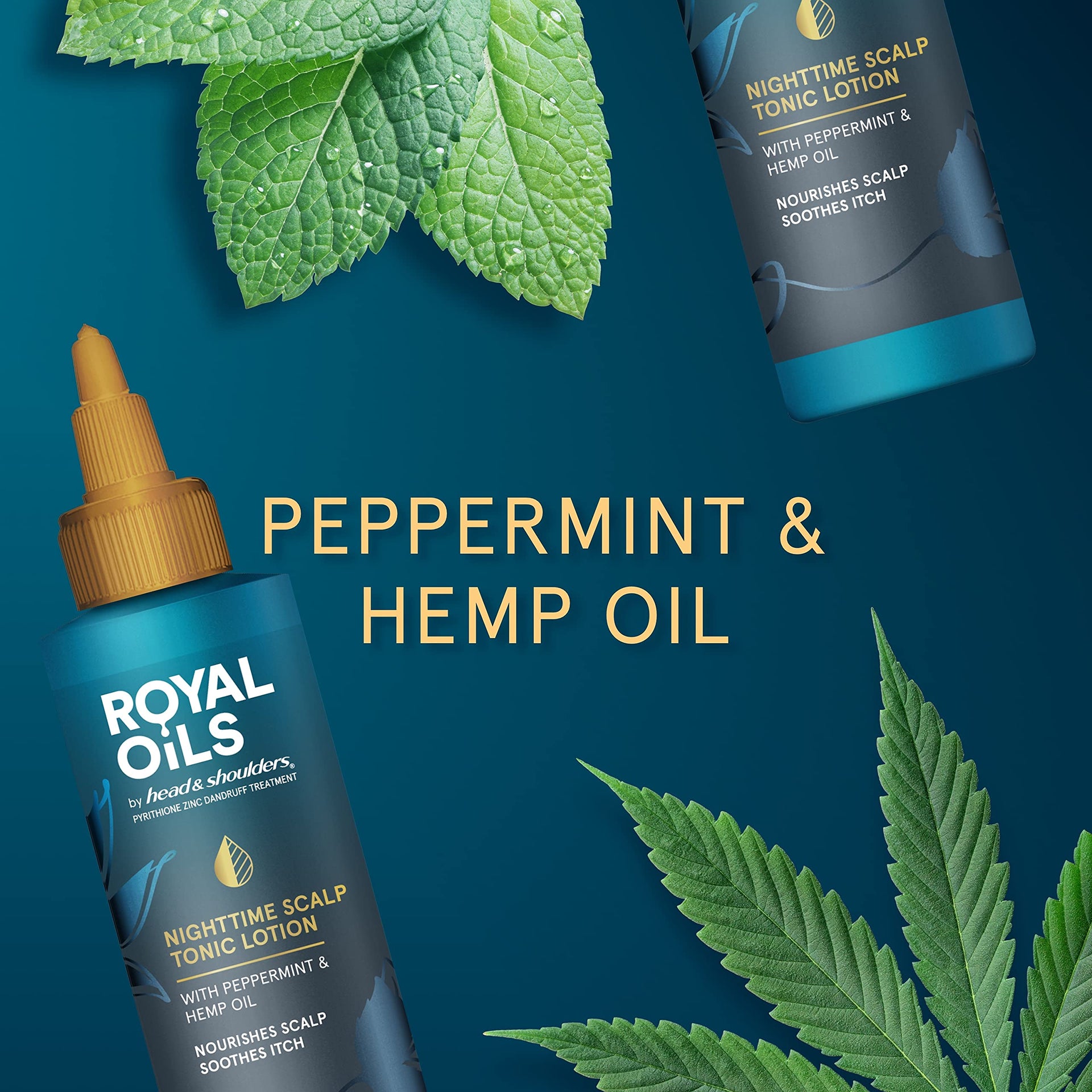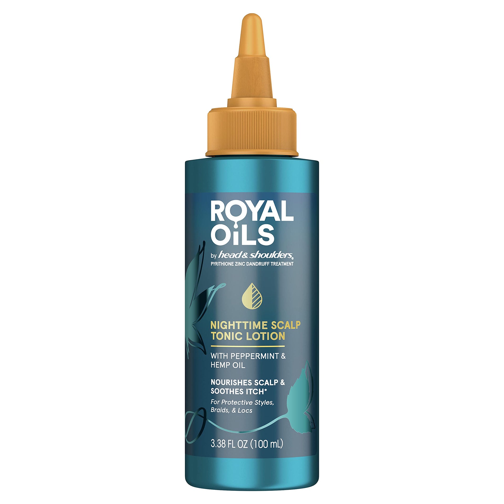 Head & Shoulders Royal Oils Curly Hair Product Nighttime Scalp Tonic Lotion with Peppermint and Hemp Oil, Sulfate Free, 3.4 Fl Oz