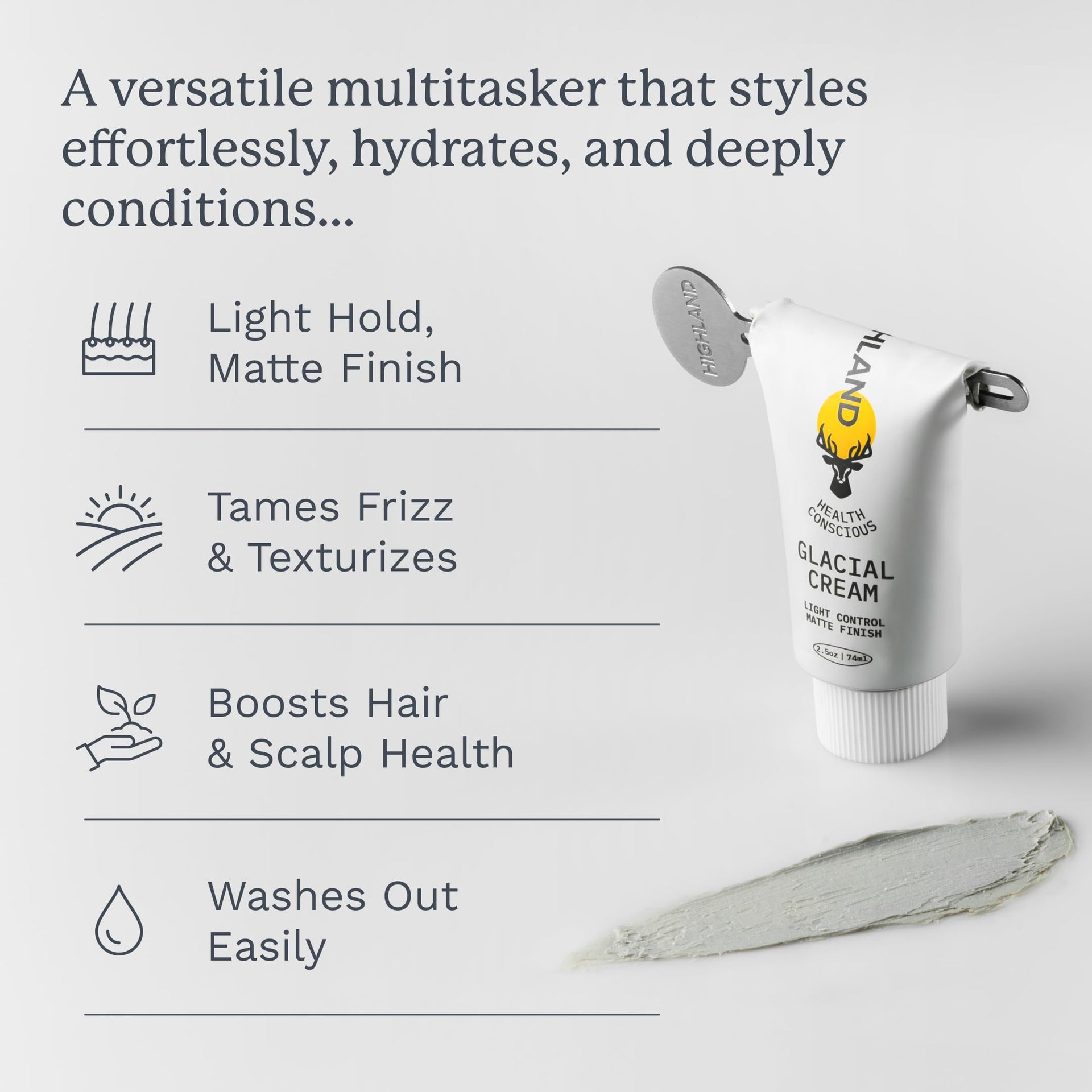 - ๐๐๐ฌ๐ข๐ ๐ง๐๐ ๐๐จ๐ซ ๐๐ฅ๐ฅ ๐ก๐๐ข๐ซ ๐ญ๐ฒ๐ฉ๐๐ฌ: Our award winning Glacial Cream formula is ideal for all hair types and texures. It's versatility makes it the ideal anti frizz styling cream, slick back styling cream, leave-in conditioning cream, curl defining cream, texture defining cream, and bond smoothing cream.
