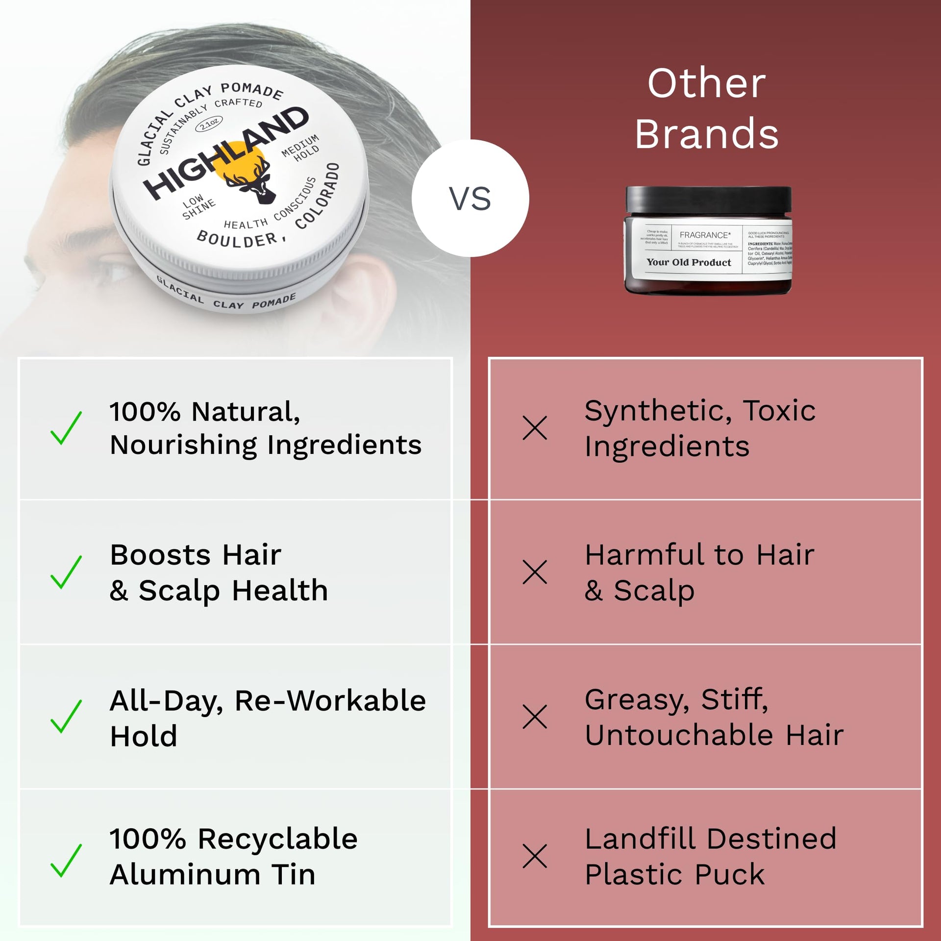 Highland Glacial Hair Clay Pomade | Award-Winning Natural & Organic Styling Clay | Medium Hold, Low Shine | For Men & Women | Promotes Scalp Health