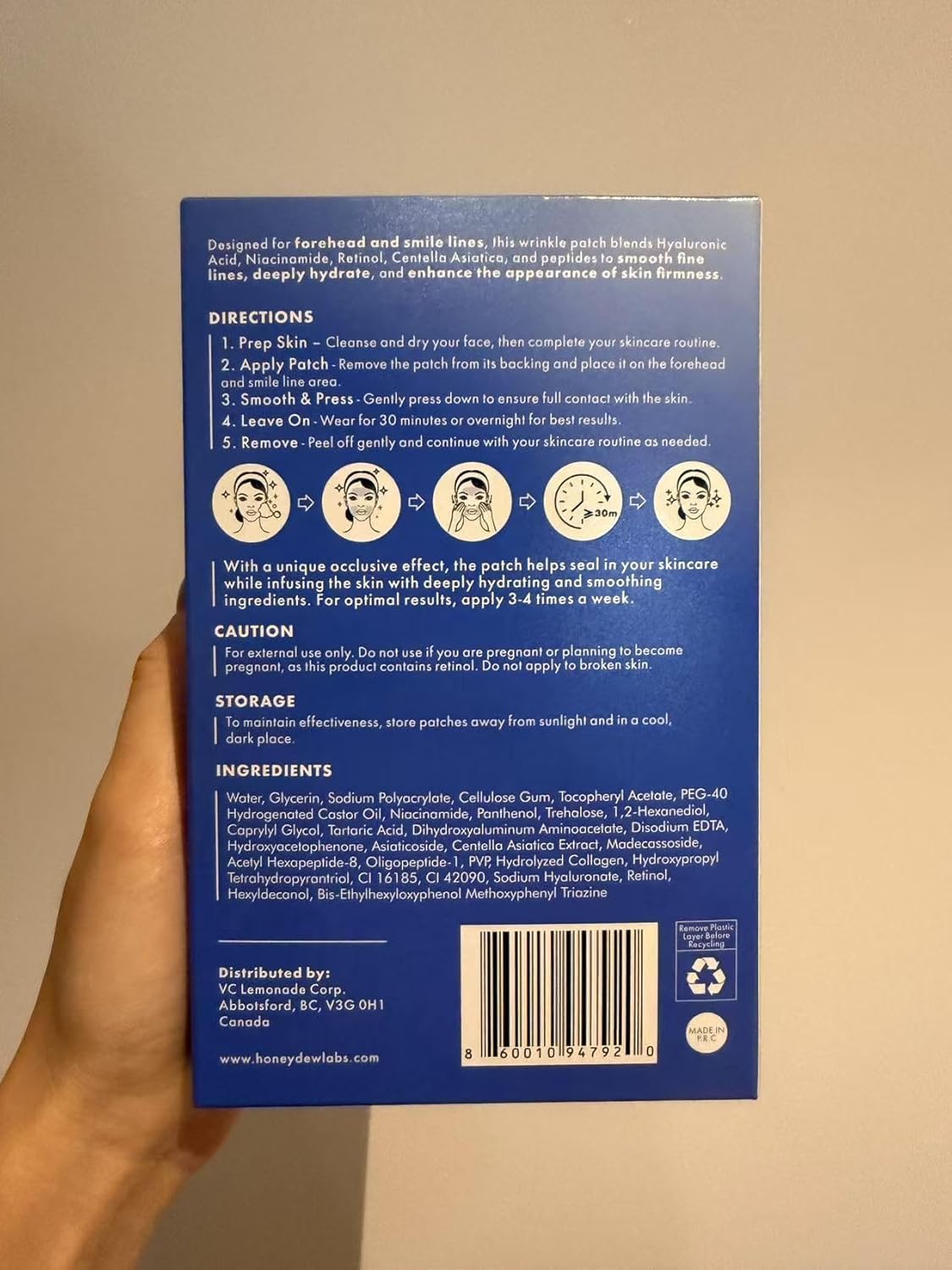 Honeydew Labs Anti-Wrinkle Patches for Forehead & Smile Lines with Retinol, Collagen & Peptides – 36PCS Overnight Face Smoothing