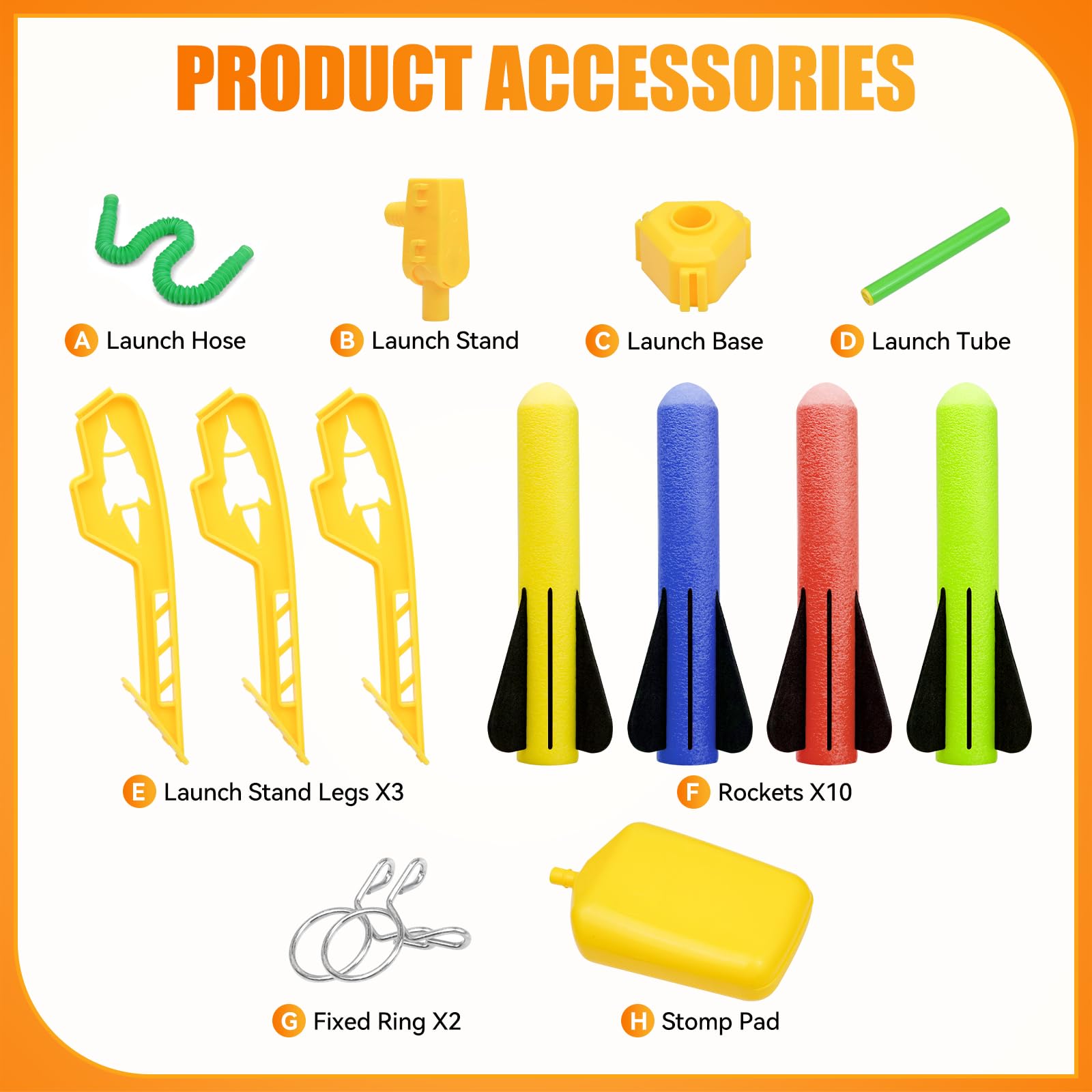 Hopture Rocket Launcher Power Air Toy Set with 10 Multi-Color Foam Rockets Launch Pad, Outdoor Activity Game