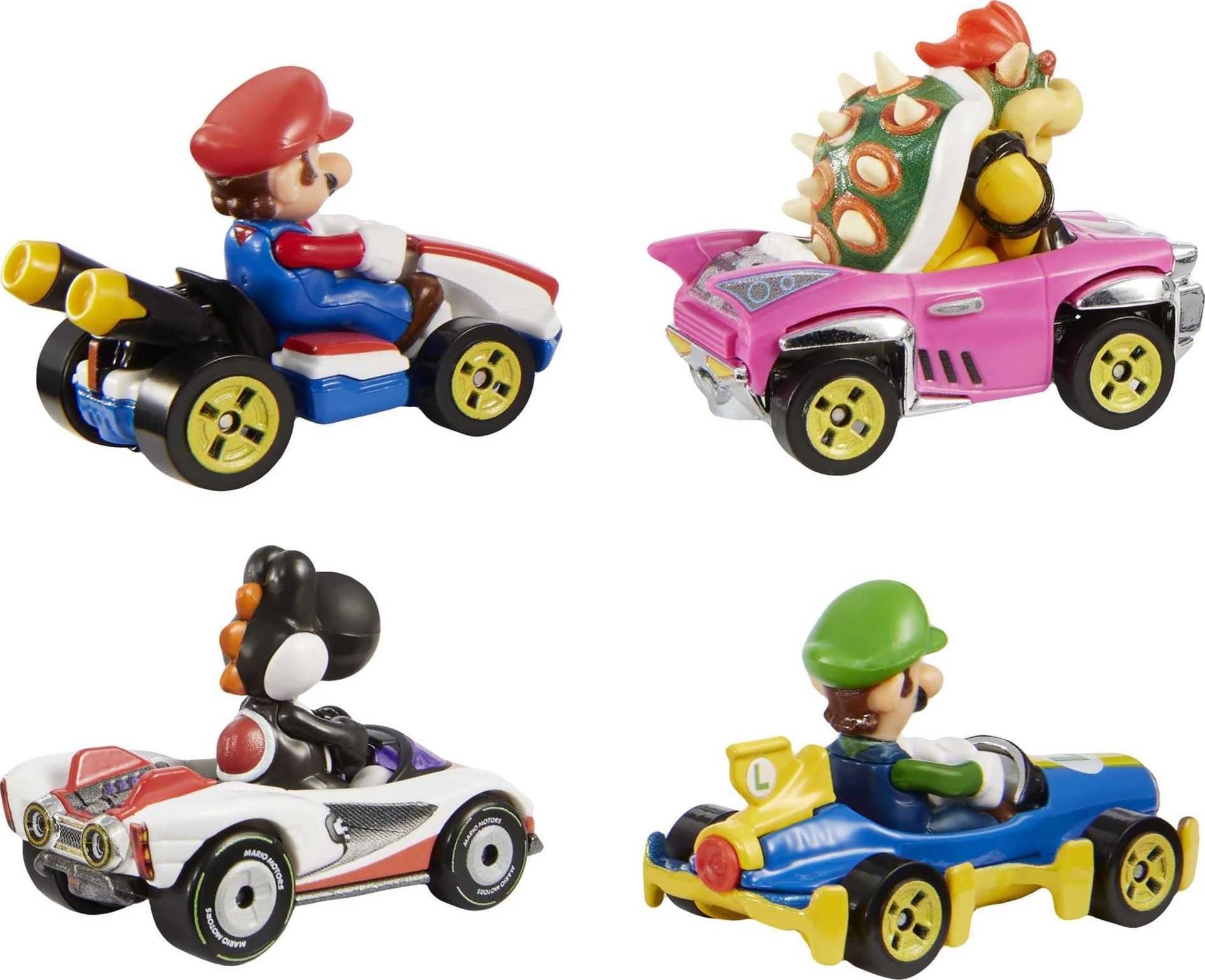 Hot Wheels Mario Kart Set of 4 Die-Cast Toy Cars with Attached Character Drivers, Includes Black Yoshi (Amazon Exclusive)