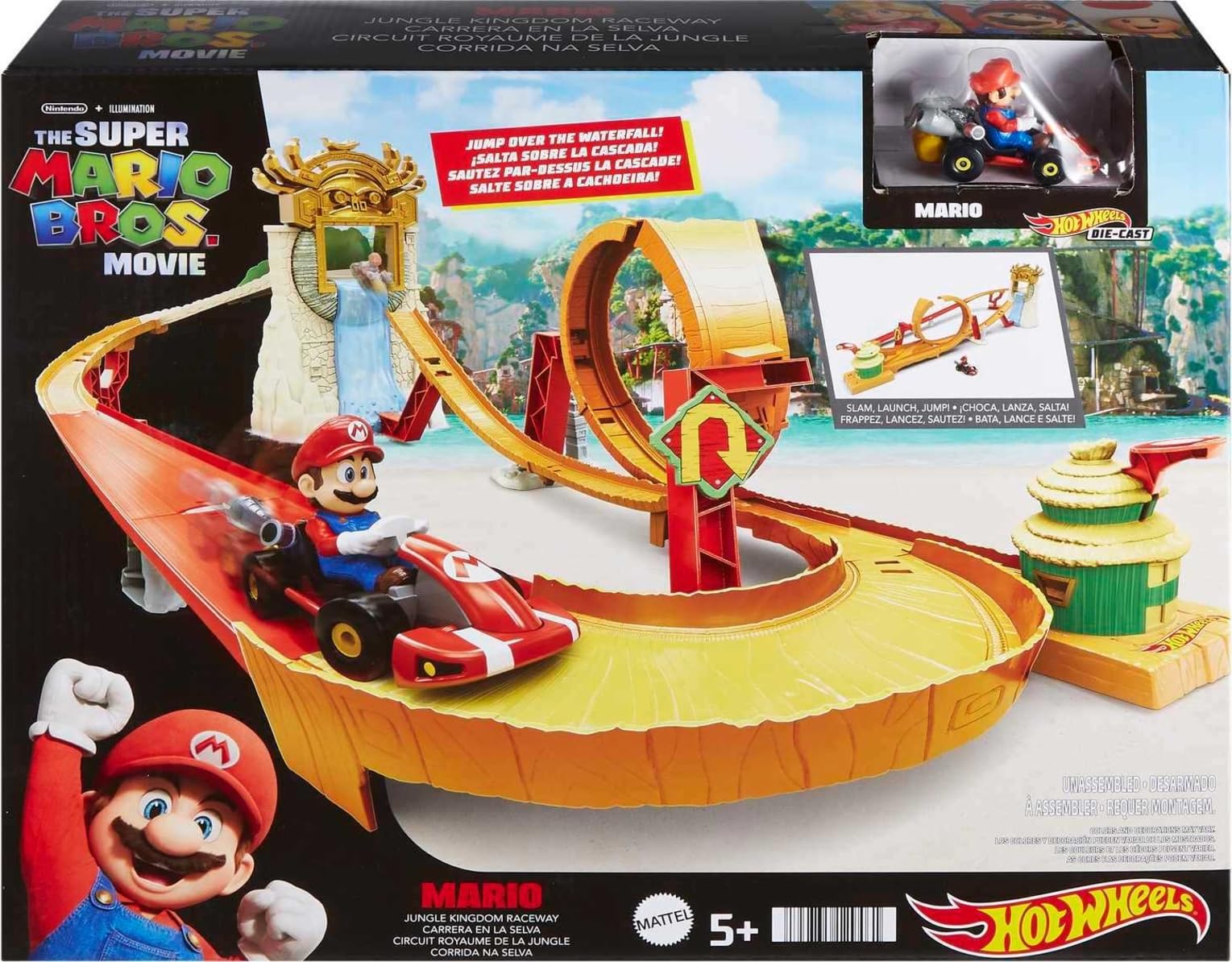 Hot Wheels Mario Kart Track Set & Toy Car, Super Mario Bros Jungle Kingdom Raceway, 3+ Feet Tall with Die-Cast Mario Kart & Waterfall Jump