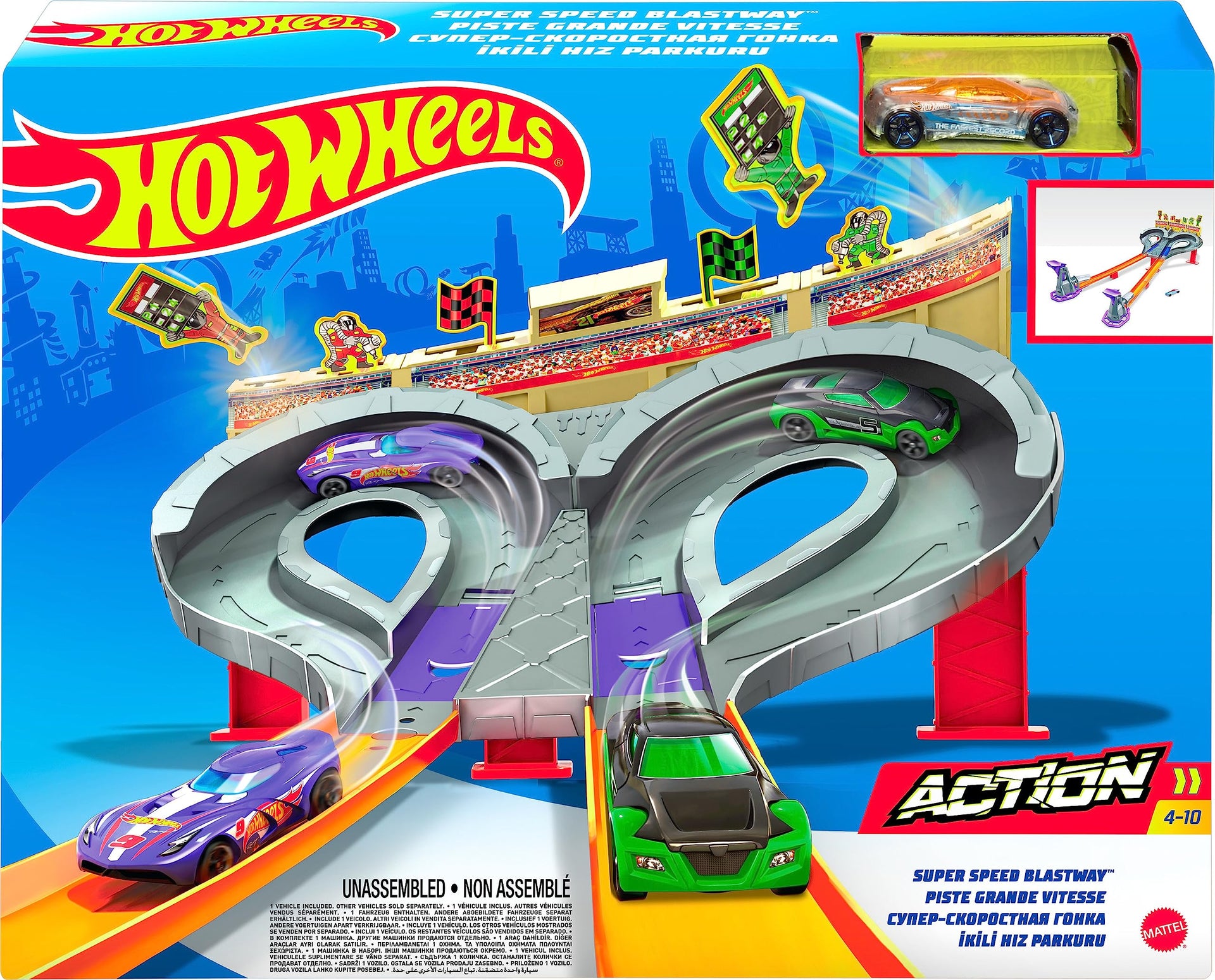 Hot Wheels Track Set Super Speed Blastway Playset, Dual-Track Racing for 1 or 2 Players, Includes 1:64 Scale Toy Car