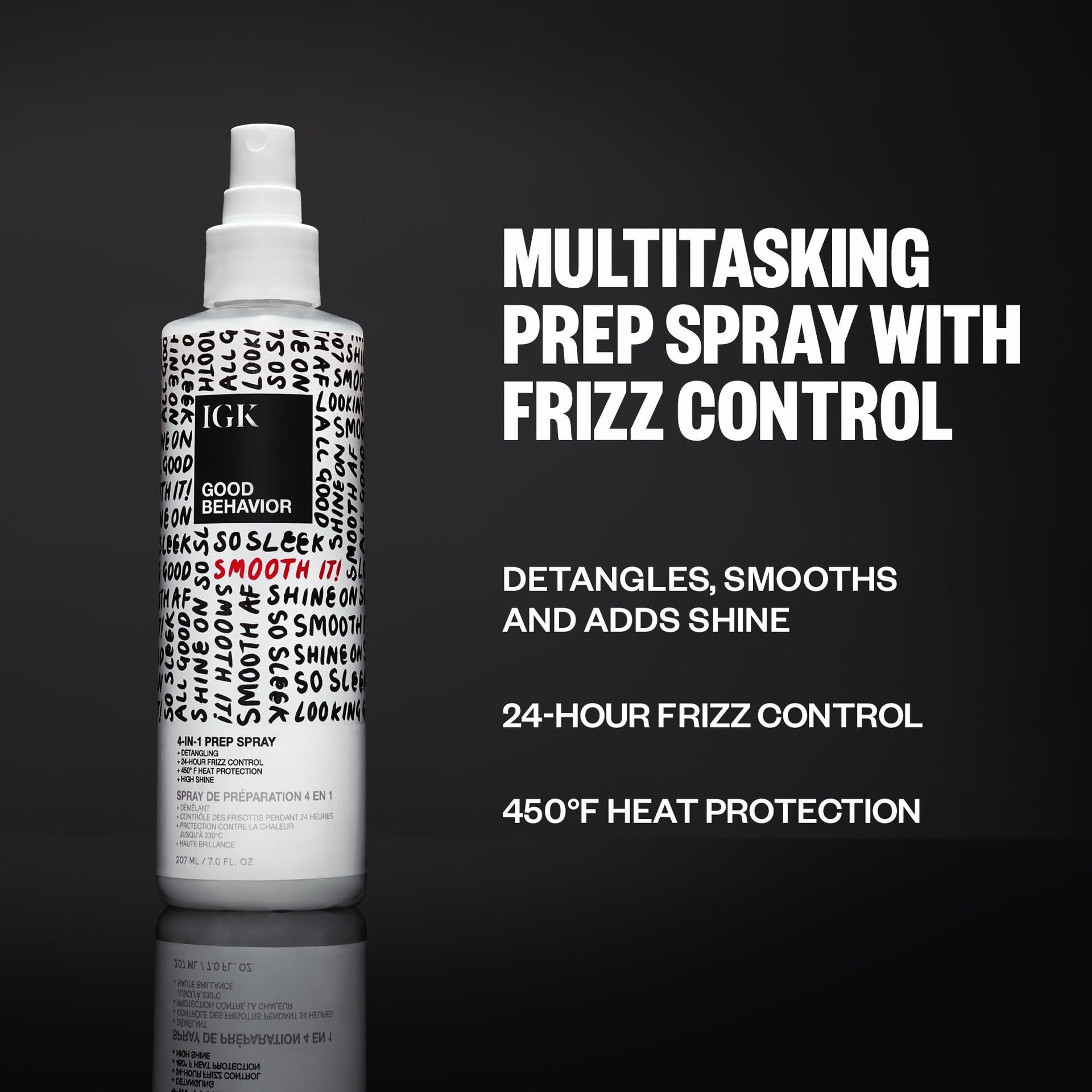 IGK GOOD BEHAVIOR 4-in-1 Prep Spray | Leave In + Detangle + Heat Protectant | Vegan + Cruelty Free | 7 Oz