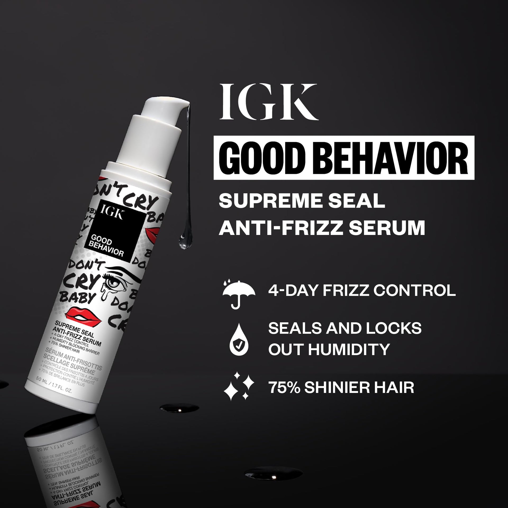 IGK Good Behavior Anti-Frizz Smoothing Serum – Boosts Shine, Seals Out Humidity, UV & Heat Protection, For Dry Frizz-Prone Hair, 1.3 oz