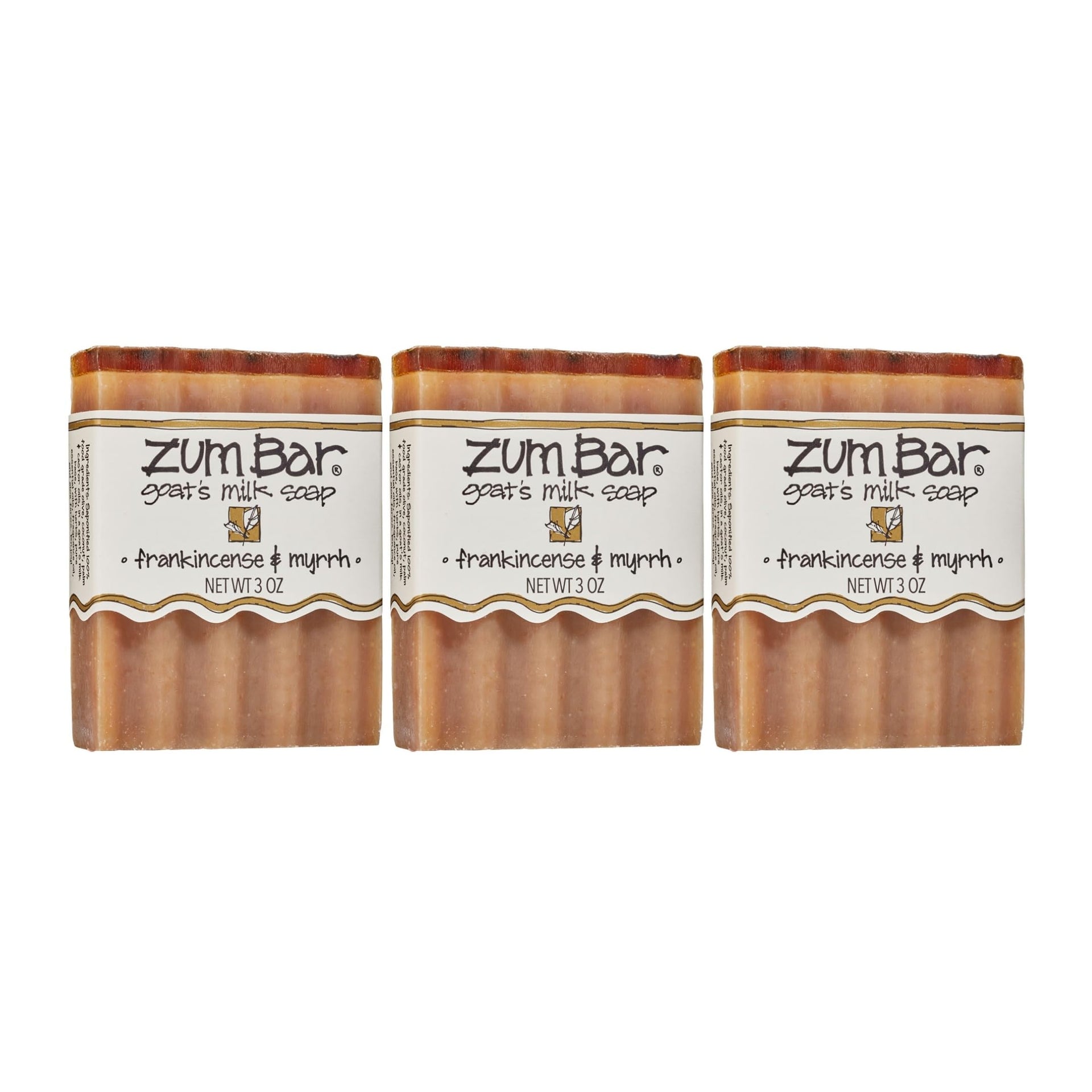 Indigo Wild Zum Goat's Milk Soap Bar - Bar Soap for Hands & Body Made with Essential Oils - 3 oz - Frankincense & Myrrh (3 Pack)