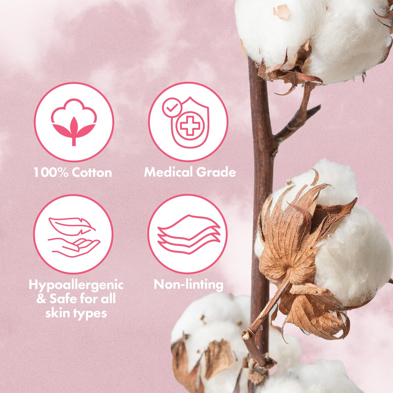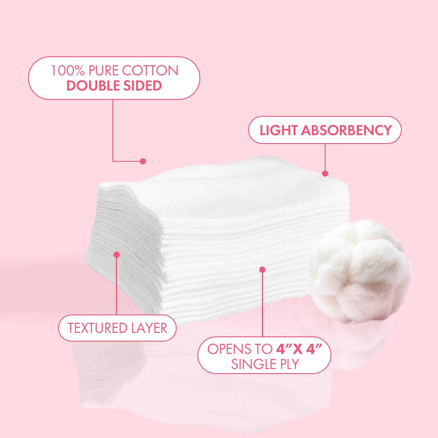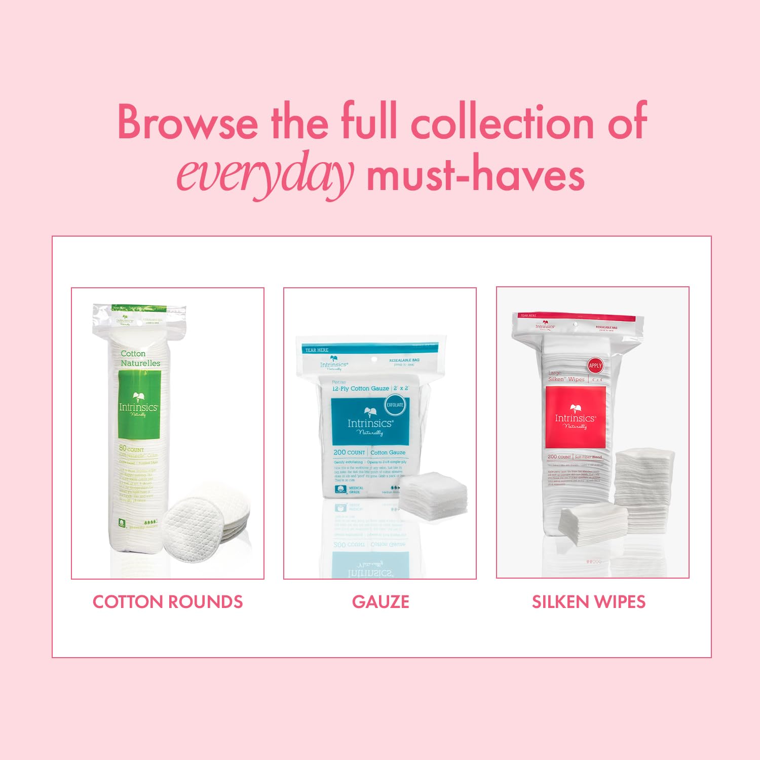 Intrinsics Petite Silken Wipes, 200 Count – 2x2" 4-Ply Lint-Free Hypoallergenic Cotton Pads for Makeup, Skincare, Nails & Spa