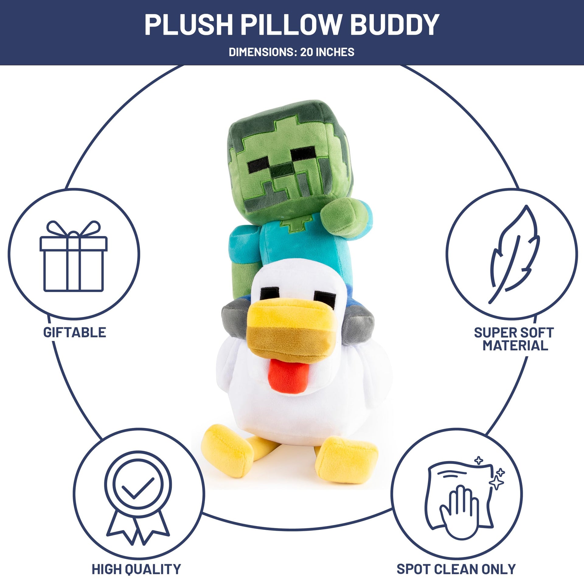 Jay Franco Minecraft Plush Pillow Buddy - Soft Plushie Stuffed Pillow, 20 Inches, Gray - Chicken Jockey