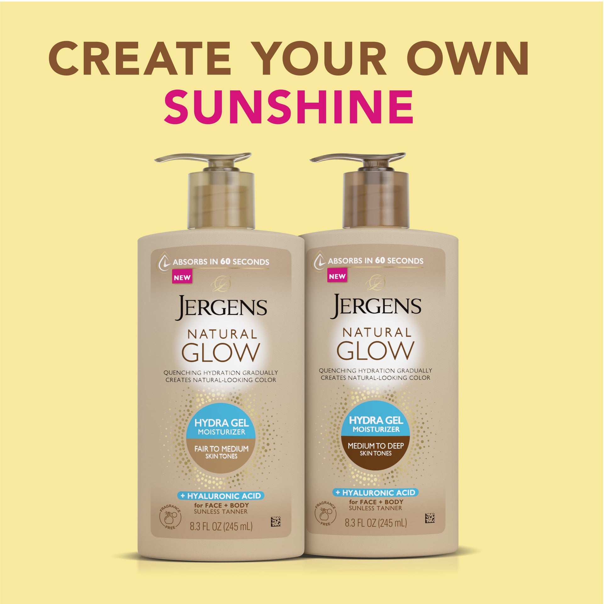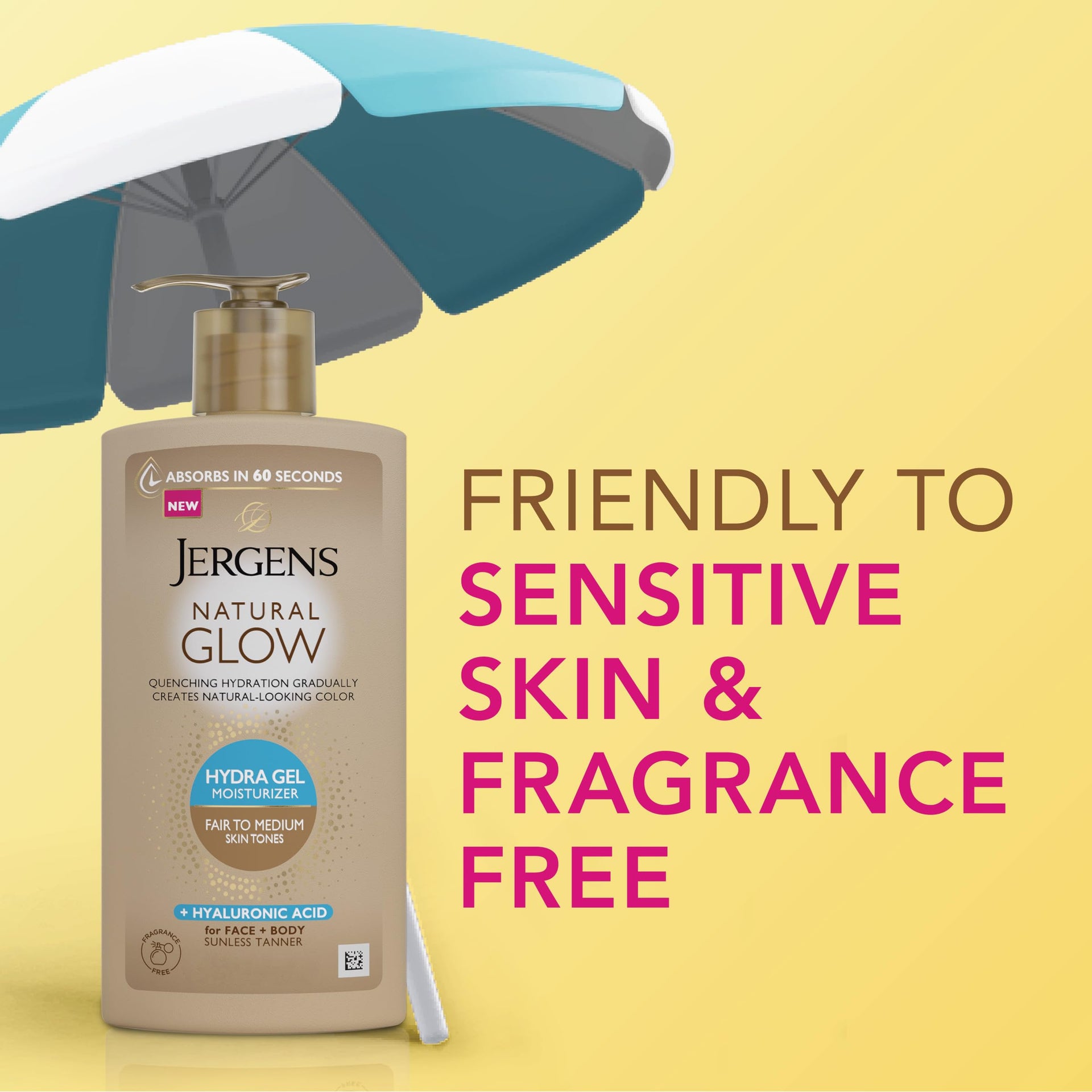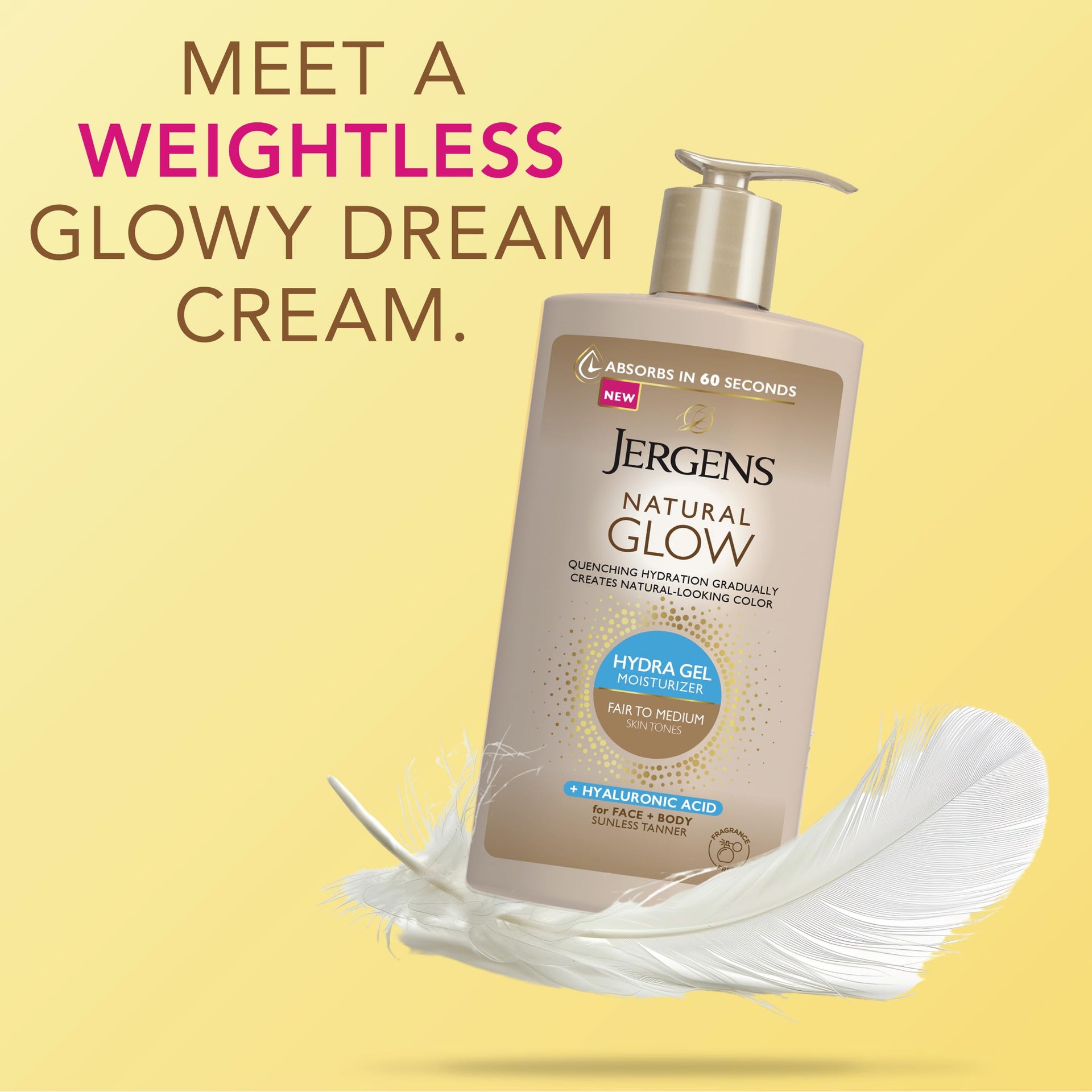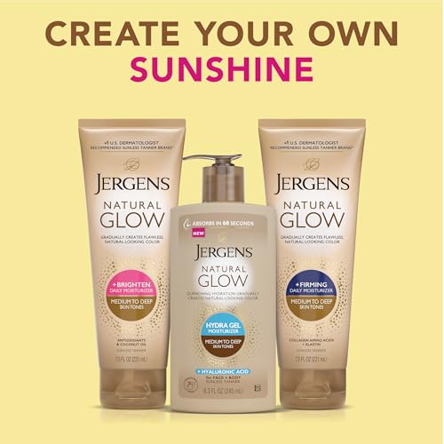 Jergens Natural Glow Hydra Gel Moisturizer with Hyaluronic Acid – Hydrating Self Tanner for Fair to Medium Skin, Fragrance-Free, 8.3 fl oz