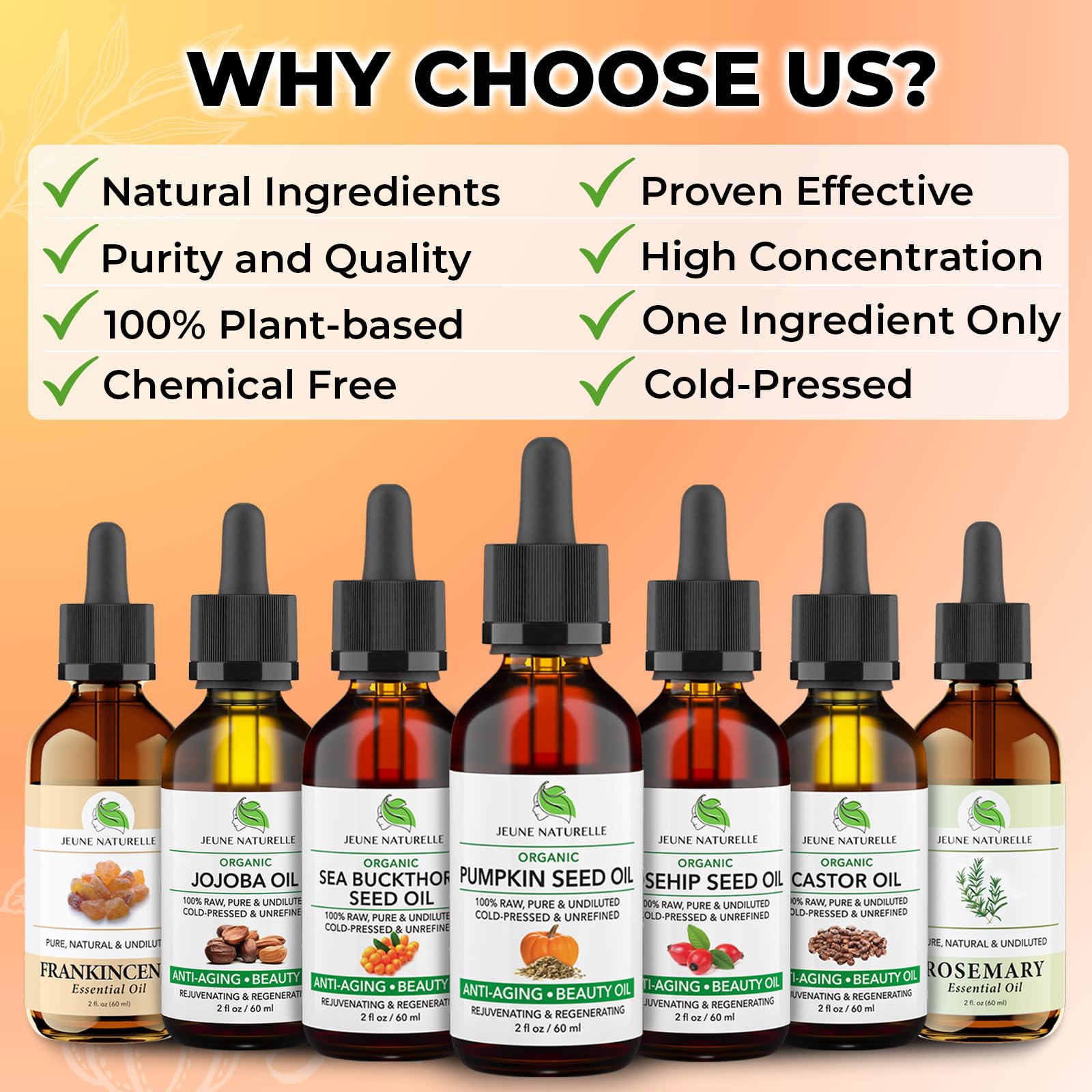 - [ANTI-AGING]: Pumpkin Seed Oil provides an excellent solution for premature aging, dehydrated skin, and cell renewal. Packed with essential fatty acids, vitamins, minerals, antioxidants, it protects our skin cells from damages giving the skin a young and glowing look. Pumpkin Seed Oil penetrates deep layers of the skin, improving moisture and collagen levels, while reducing wrinkles and fine lines