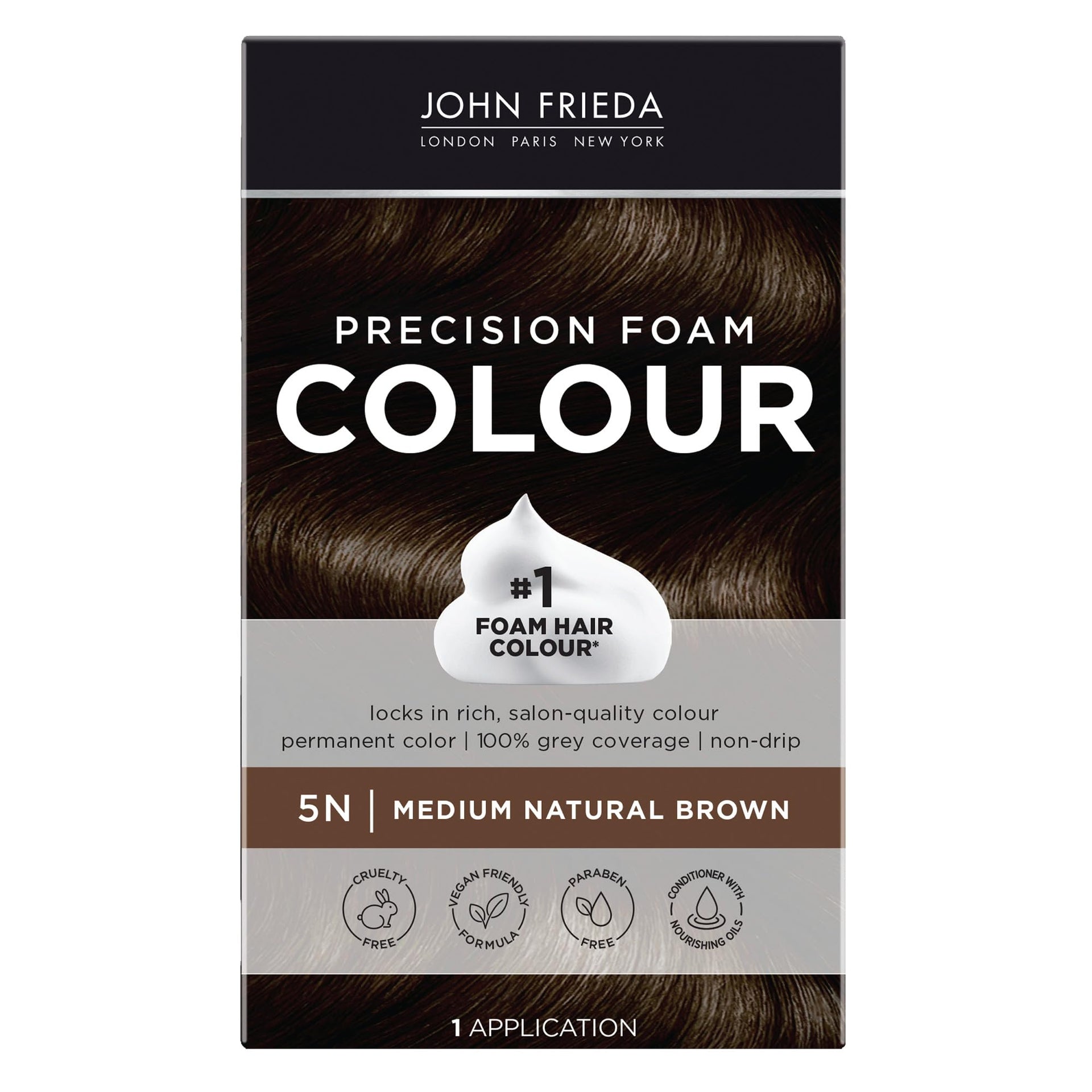 John Frieda Precision Foam Hair Color 5N Medium Natural Brown – Full Gray Coverage, Anti-Fade, Deep Color Saturation, 1 Application Kit