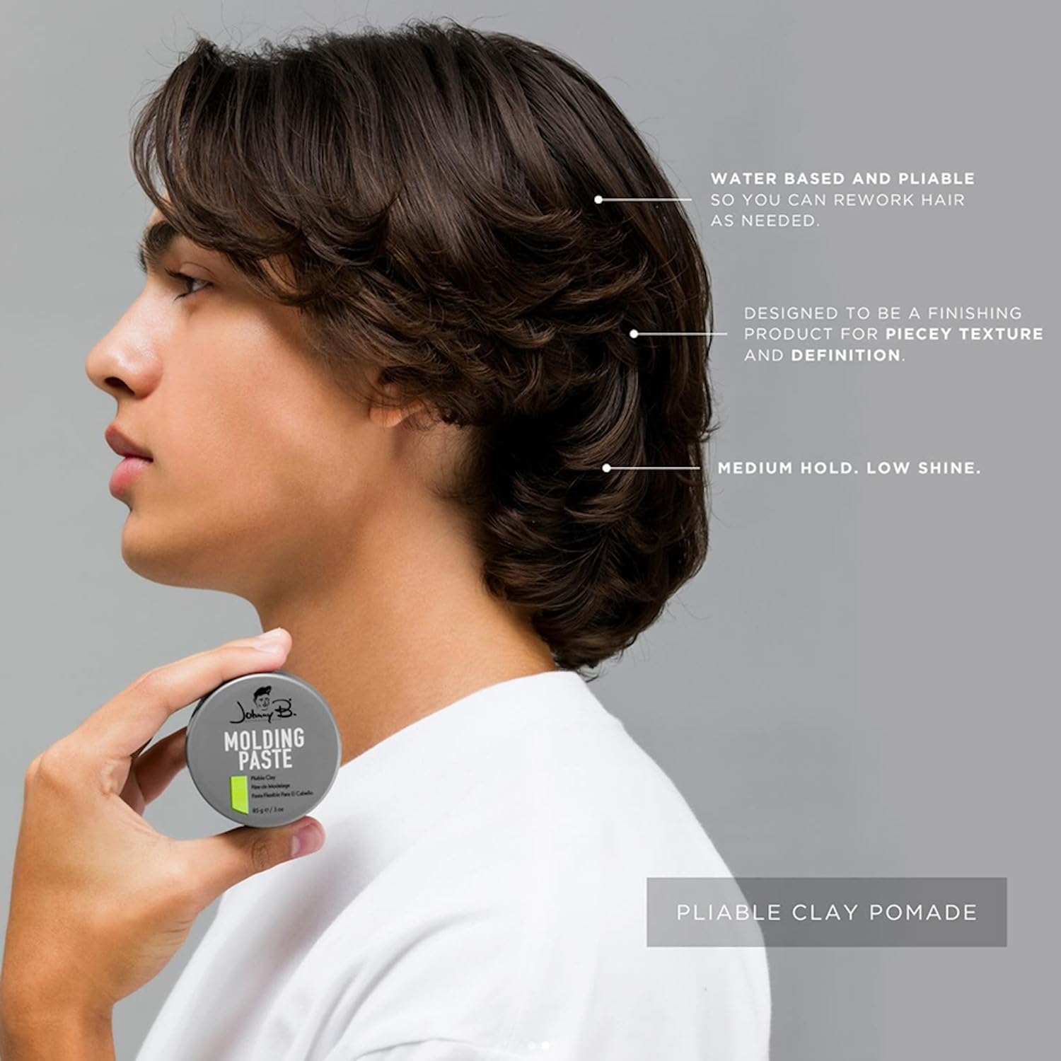 - Pliable clay formula increases thick appearance of hair