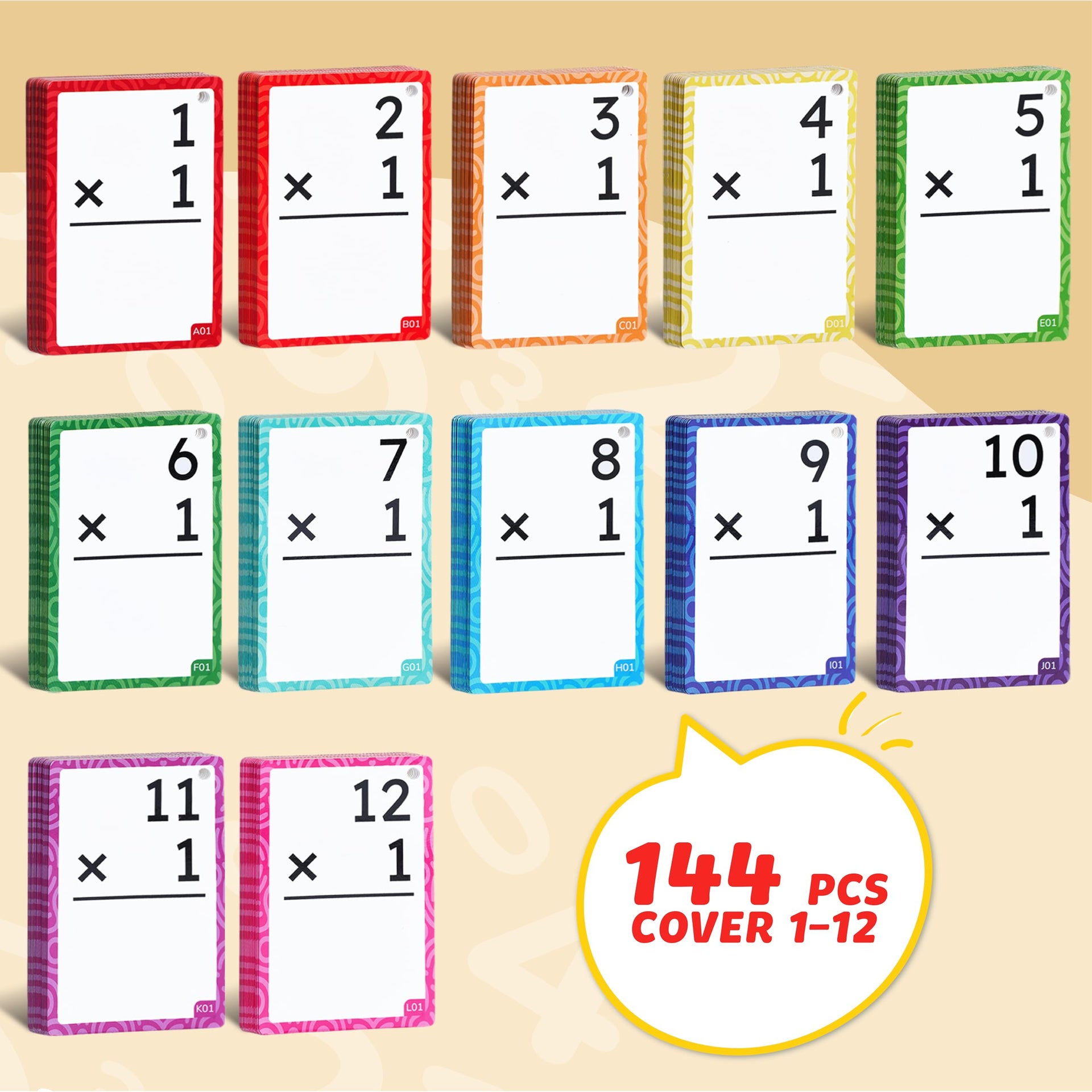 JoyCat Multiplication Flash Cards & Chart - 156 Hole-Punched Times Table Cards for Kids 8+, Math Game & Learning Tool for Grades 3-6