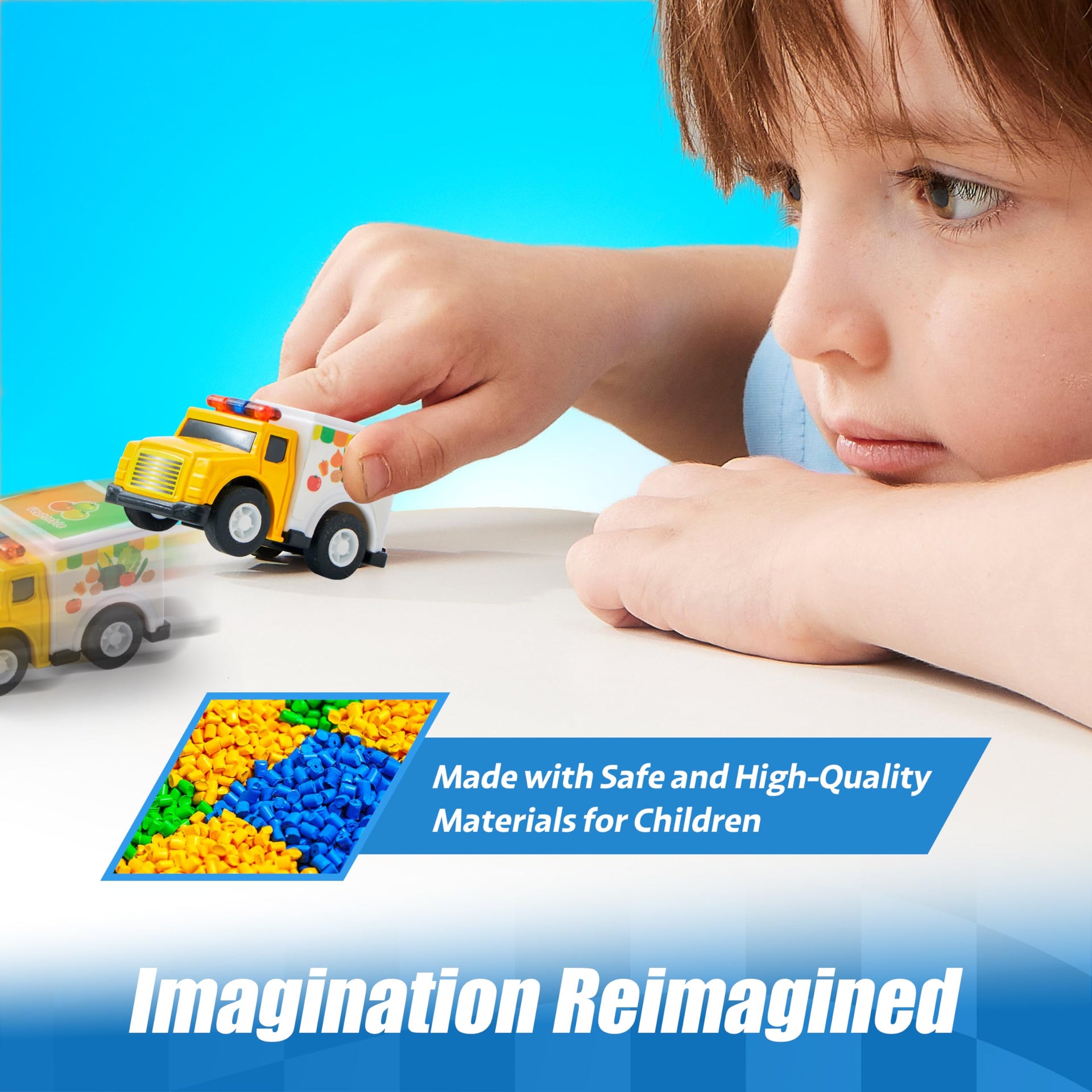 JOYIN 18-Pc Pull Back Cars & Trucks Toy Set – Friction Powered Vehicles for Toddlers Boys & Girls, Educational Play, Stocking Stuffers & Classroom Gifts