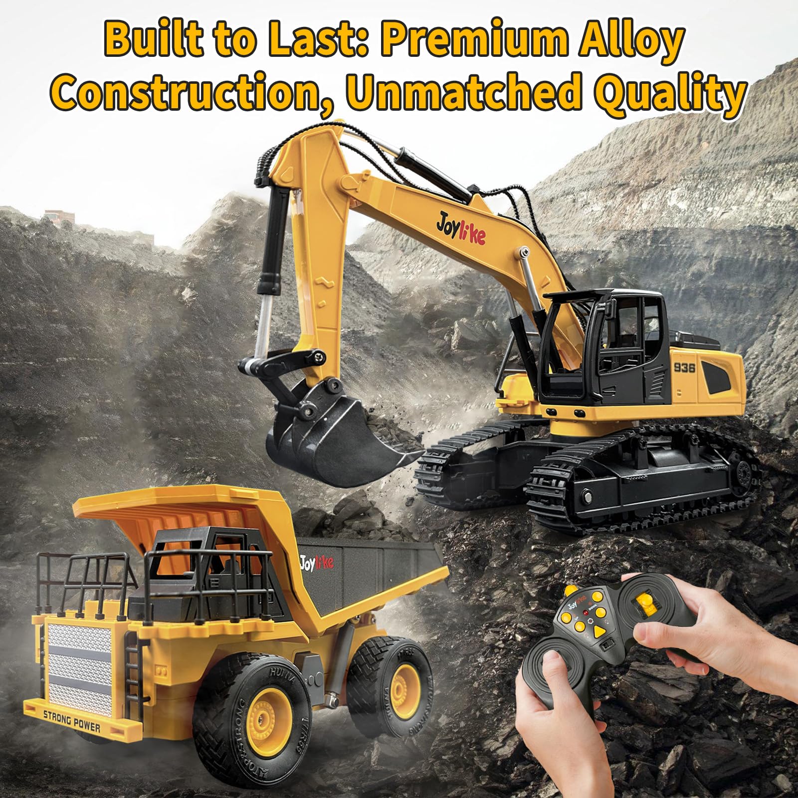 Joylike RC Excavator and Dump Truck Toy Set,2.4Ghz Metal Remote Control Construction Vehicle with Light&Sound, Best Christmas Toy for Boys 8+Year Old Kid