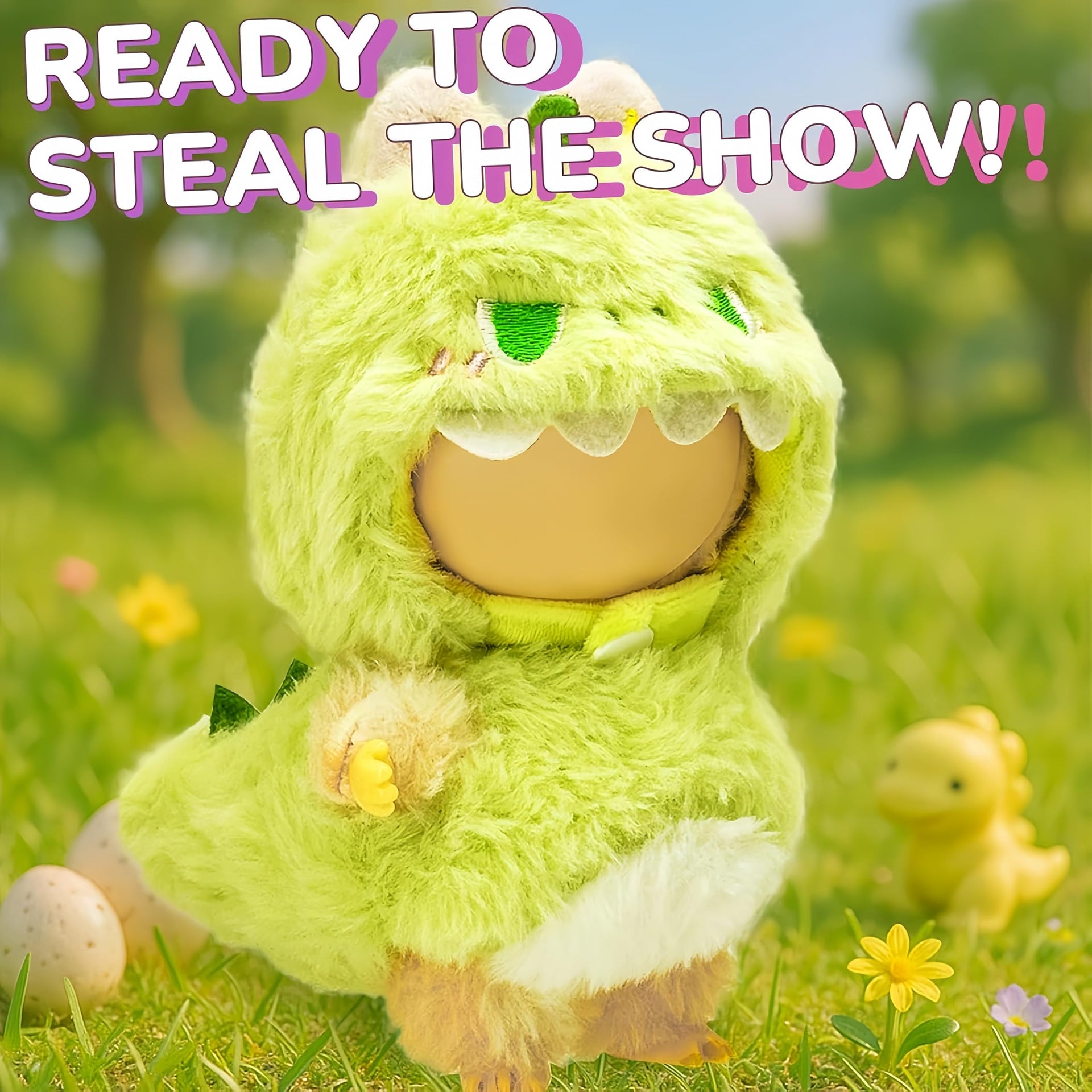 Jrelecs Dinosaur Doll Outfit for 17cm/6.7" Labubu Dolls – 2-Piece Hat & Clothing Set, Cute Stylish Clothes Accessories (Doll Not Included)