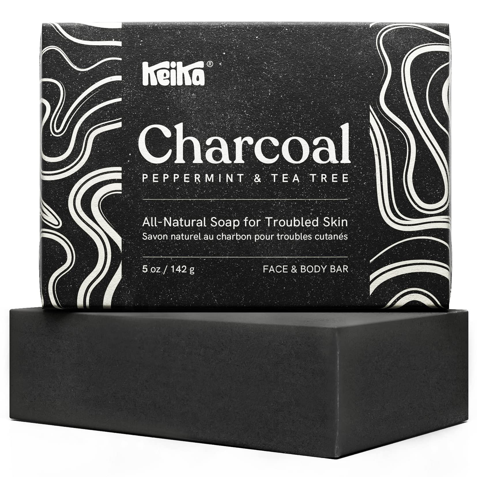 Keika Charcoal Black Soap Bar for Eczema, Psoriasis, Face, Body, Men Women Teens with Oily Skin, 5 oz.
