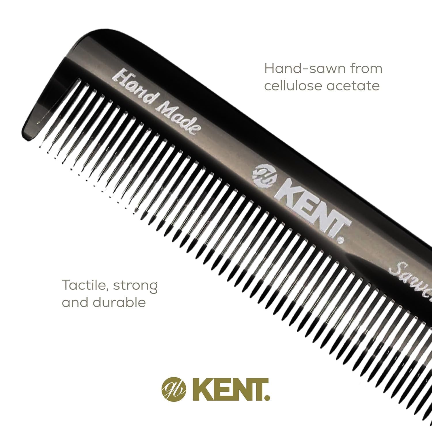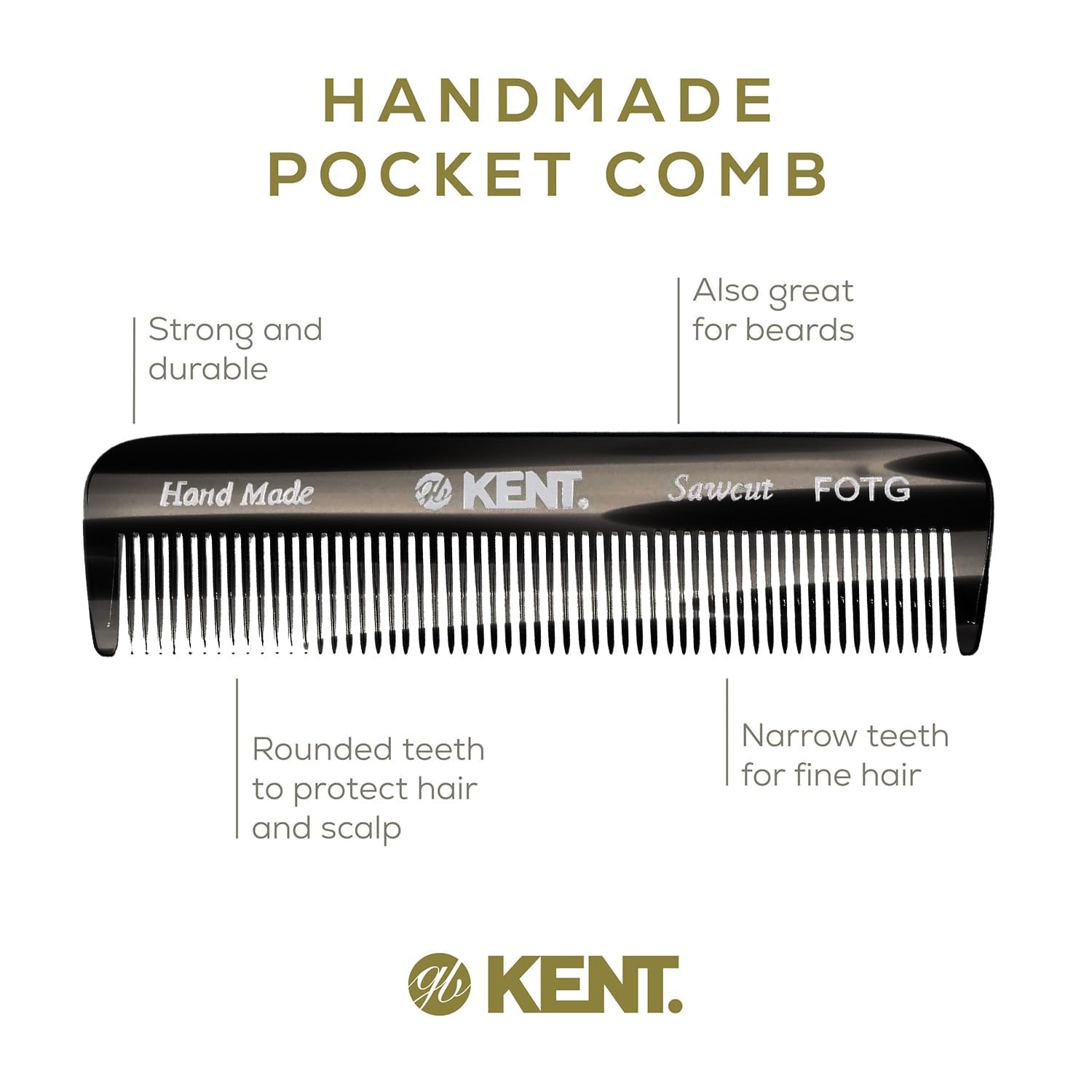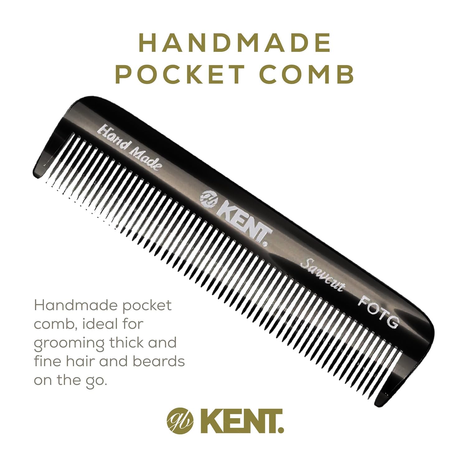 Kent FOT Black Graphite Fine Tooth Pocket Comb for Men – Handmade Travel Comb for Styling, Fine Hair, Beard & Mustache – Saw-Cut, Made in England