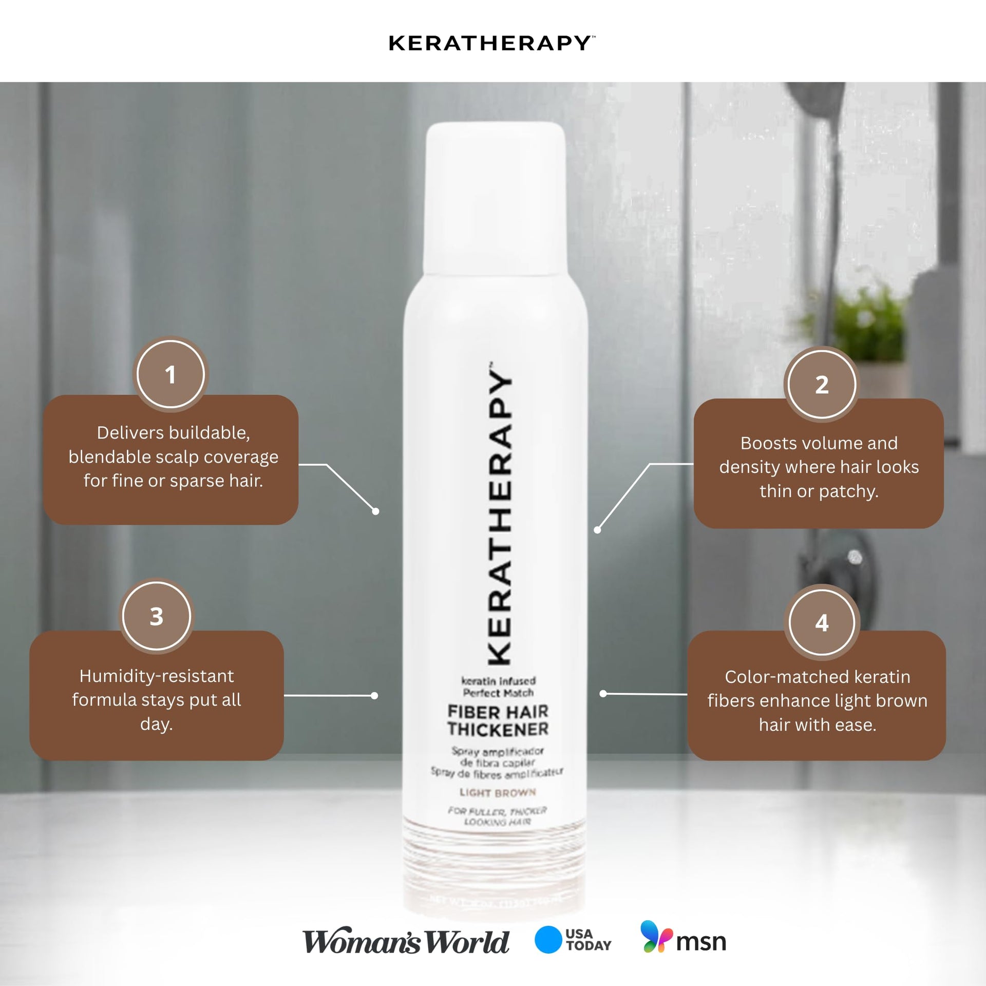 Keratherapy Keratin Infused Perfect Match Fiber Hair Thickener Spray, Light Brown, 4 fl oz – Volumizing, Concealing & Thickening Spray for Thinning Hair