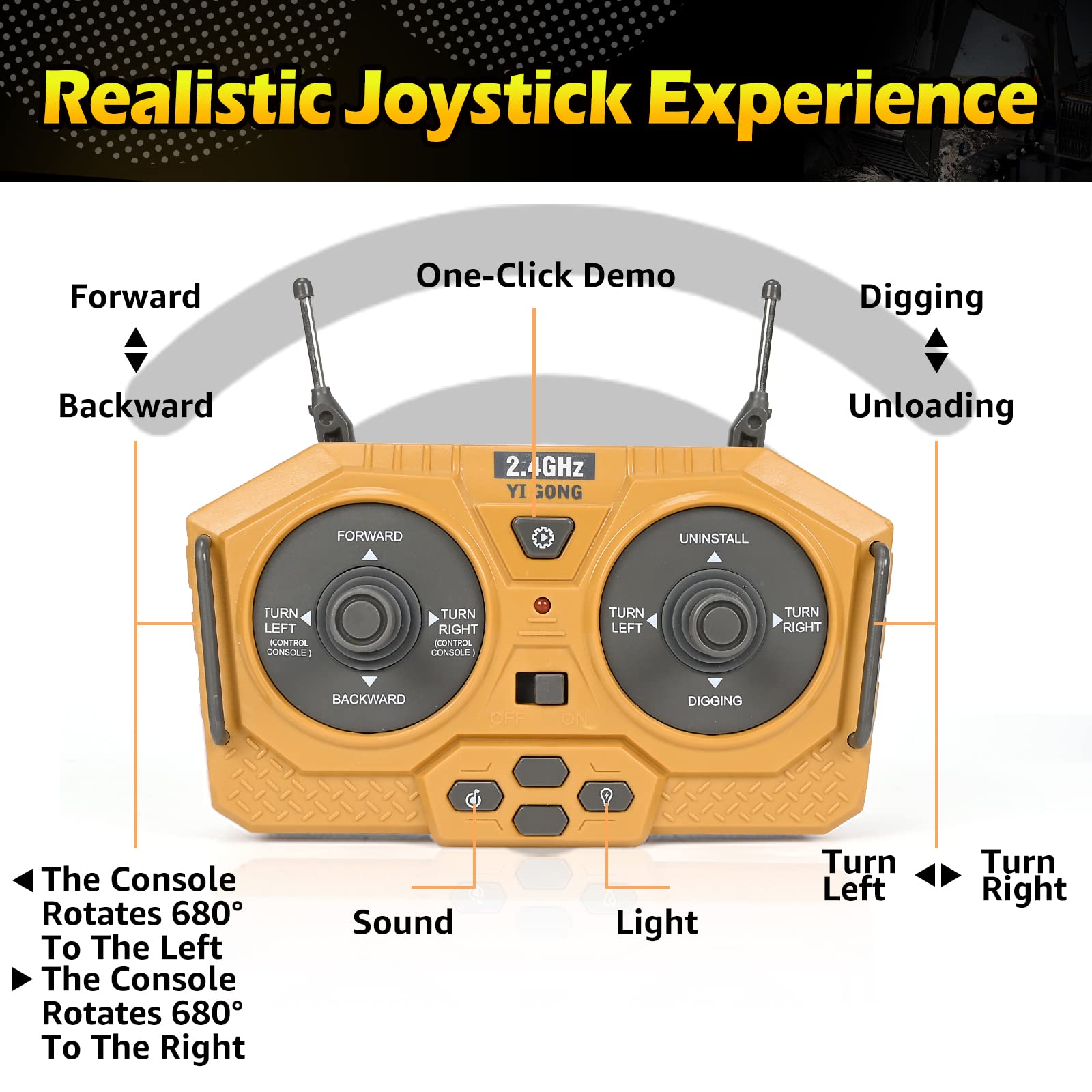 KidsFaves Remote Control Excavator Toy for Boys, 680° Turn, Metal Shovel, Lights & Sounds, 2 Batteries, Construction Toy Gift Ages 3-8