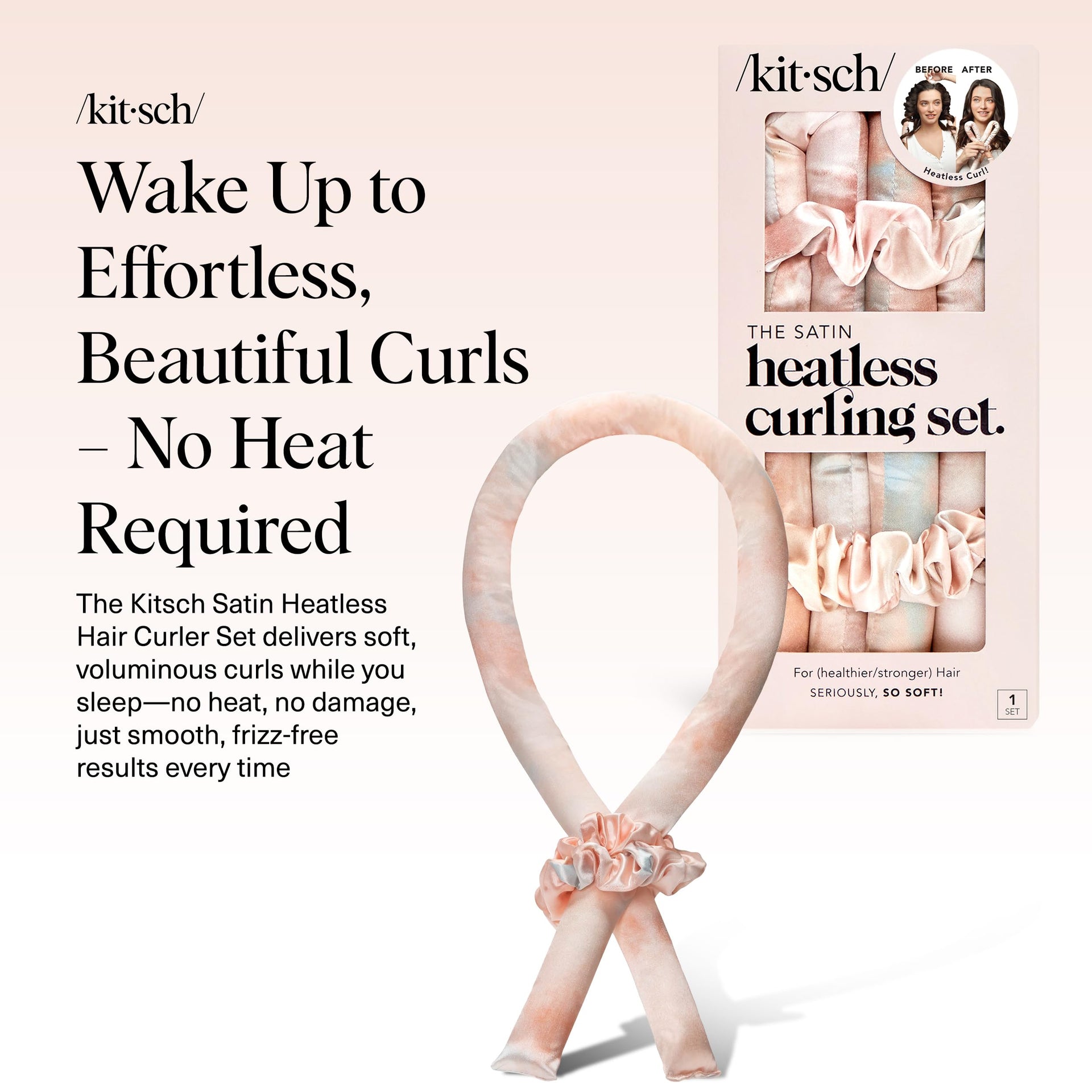 Kitsch Satin Heatless Curling Set - 34" No-Heat Hair Curler & 2 Satin Scrunchies - Overnight Frizz-Free Curls, No Damage, Sunset Tie Dye