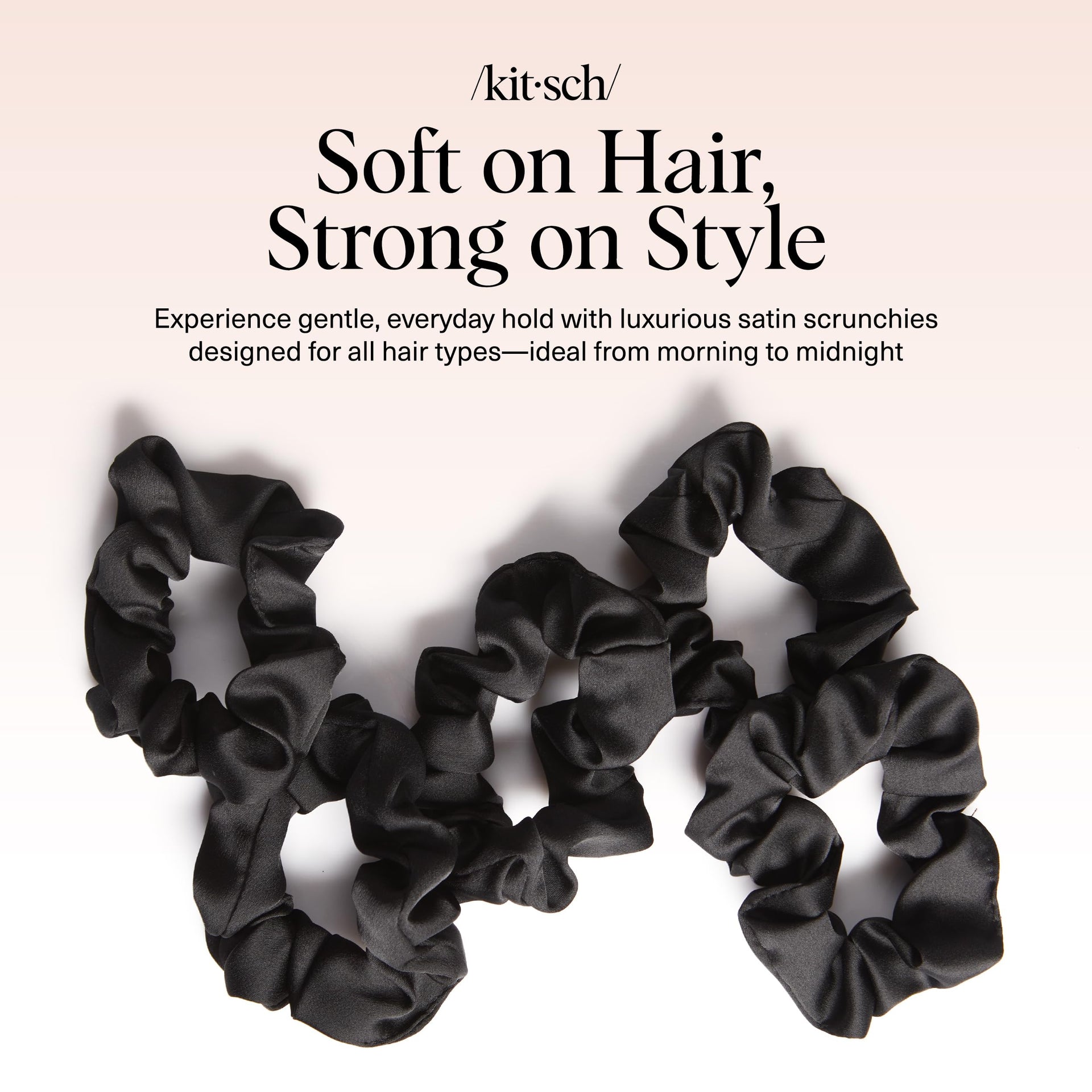 Kitsch Satin Scrunchies for Women – 5 Pcs Black No-Crease Hair Ties – Soft, Frizz-Free, Gentle & Stylish Hair Accessories – Perfect Gift for Girls