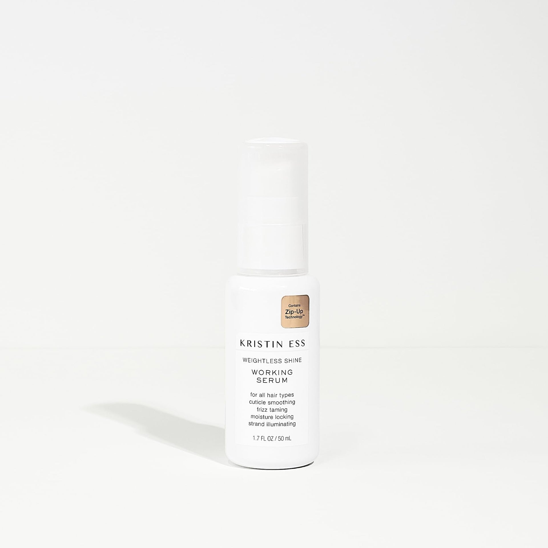 Details: Created for all hair types, Kristin Ess Hair's Weightless Shine Working Serum - Frizz Taming + Hair Smoothing tames frizz, locks in moisture, instantly smooths + illuminates strands.