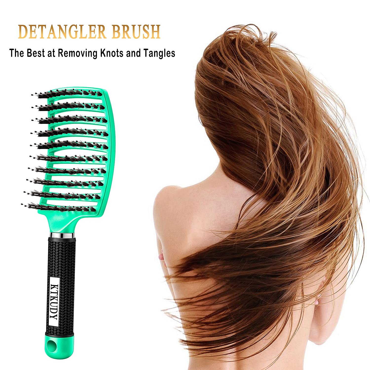 KTKUDY Detangling Brush with Boar Bristles – Curved & Vented Hairbrush for Wet or Dry Hair – Adds Shine & Reduces Frizz for Women, Men & Kids, Light Green