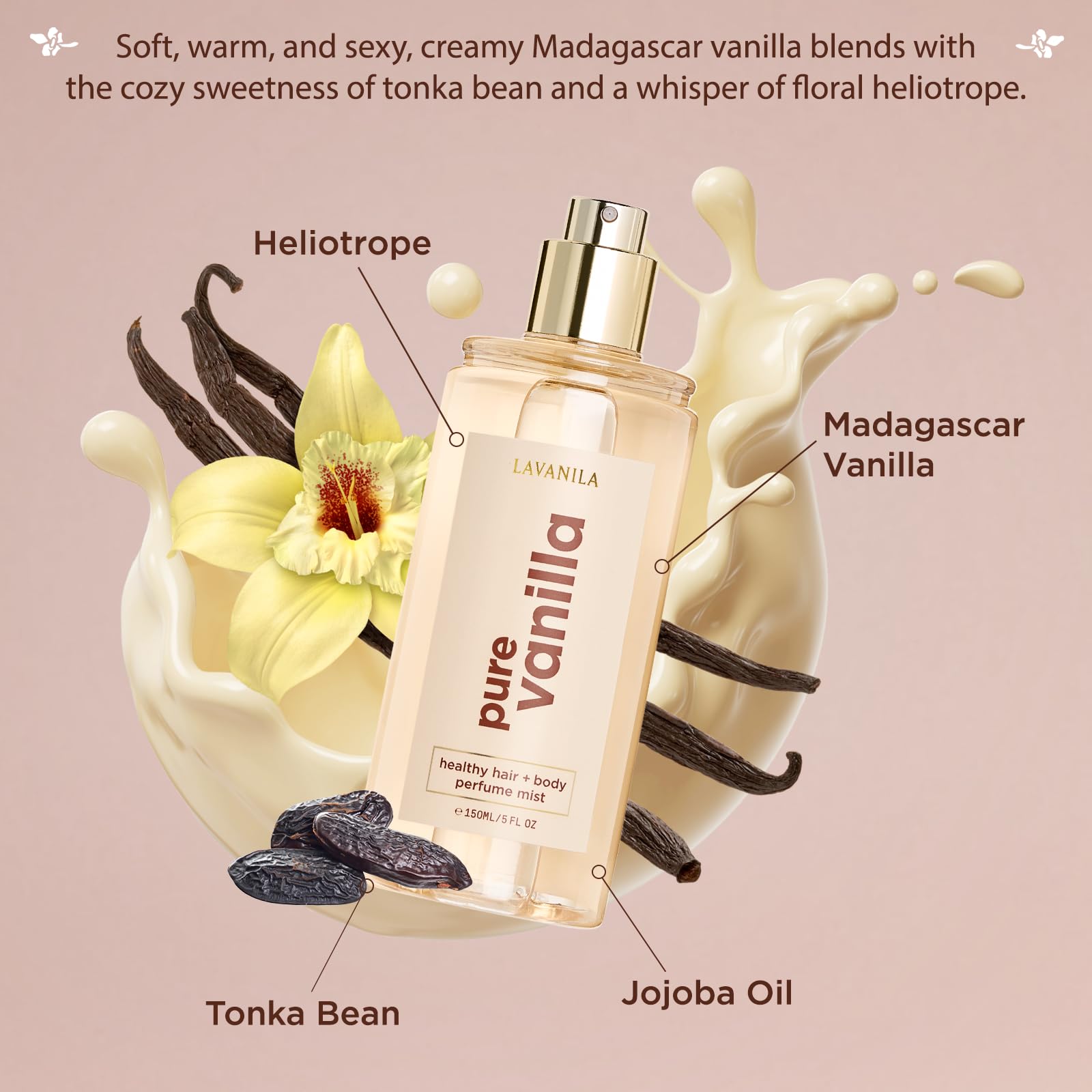 Lavanila Pure Vanilla Hair & Body Perfume Mist 5 Fl Oz | Sweet Warm Scent with Jojoba Oil, Madagascar Vanilla, Tonka Bean & Heliotrope