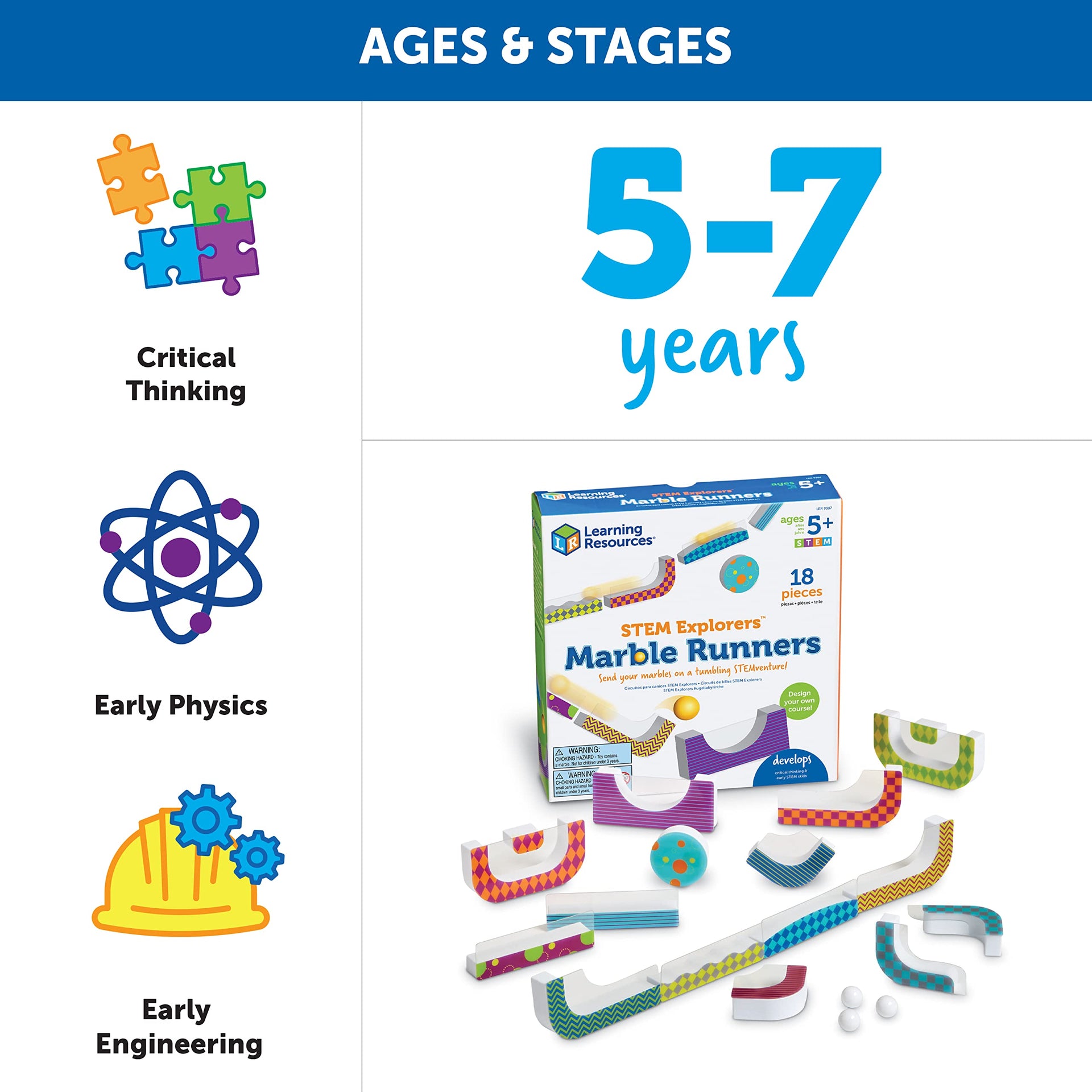 Learning Resources STEM Explorers Marble Runners - 18-Piece STEM Toy Set for Kids Ages 5+ - Fun Marble Run, Brain Teaser & Learning Game