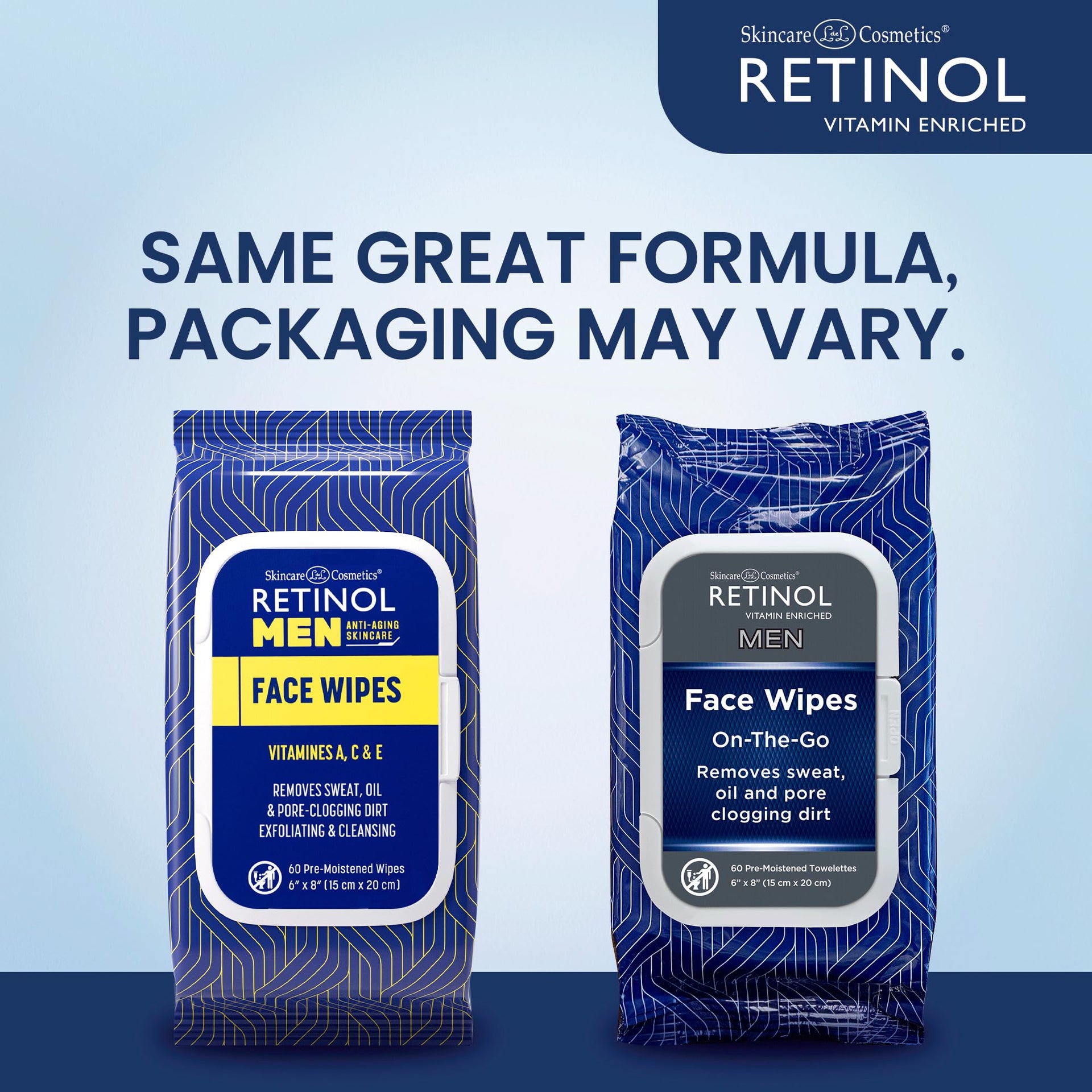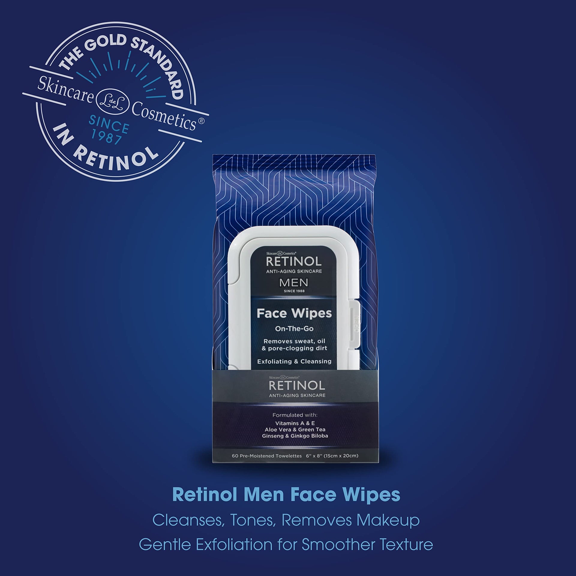 LIVAURA Retinol Men Facial Wipes – Anti-Aging Cleansing Towelettes, Removes Sweat, Oil & Dirt, No Residue, 60 Count