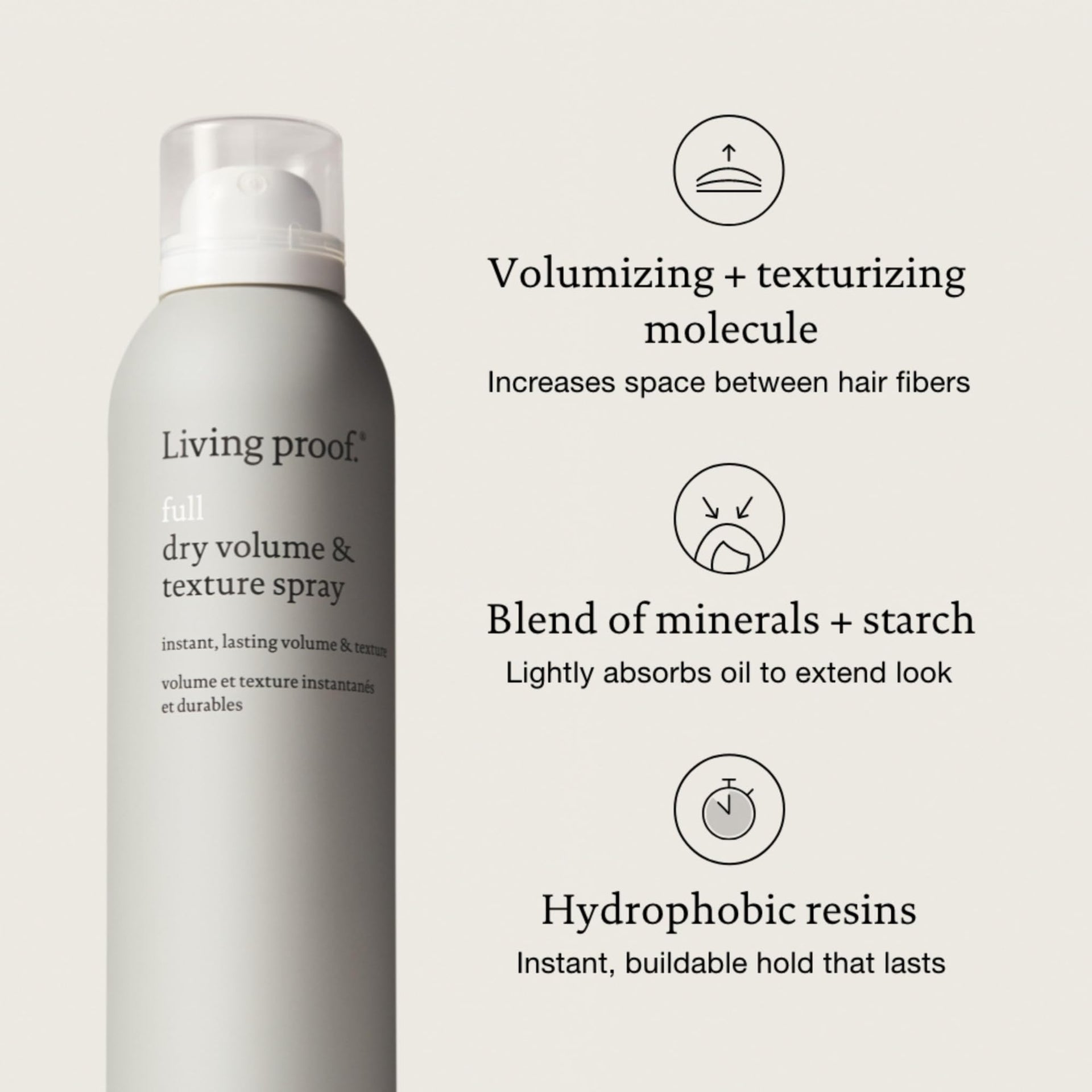Living proof Full Dry Volume & Texture Spray – Instant Volume, Texture, Oil Absorption, Heat Protection, Lightweight Hold for Fine or Flat Hair, 7.5 oz