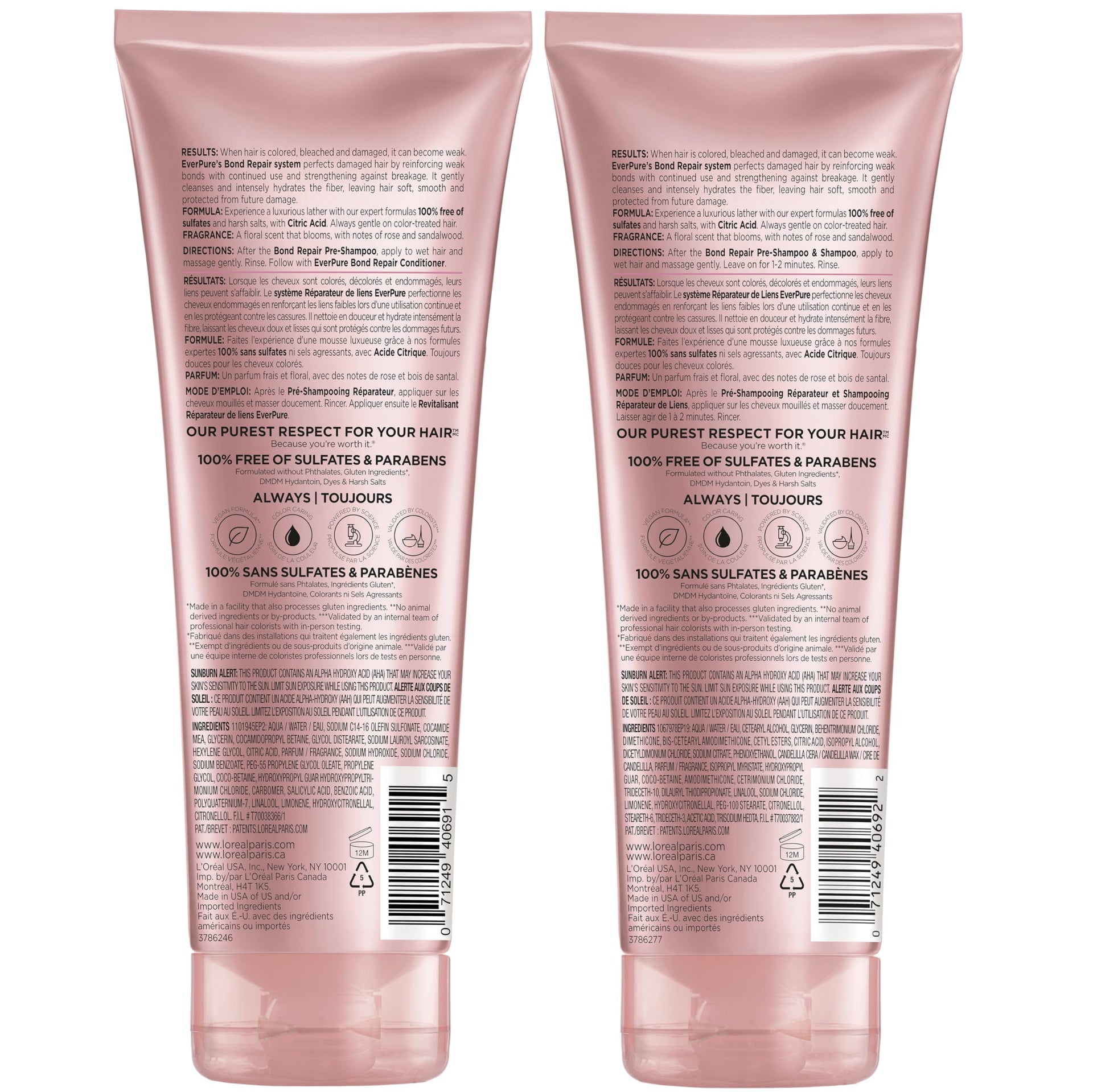 L'Oreal Paris EverPure Sulfate-Free Vegan Hair Care Kit - Shampoo and Conditioner to Strengthen and Repair Hair Bonds (Packaging May Vary)