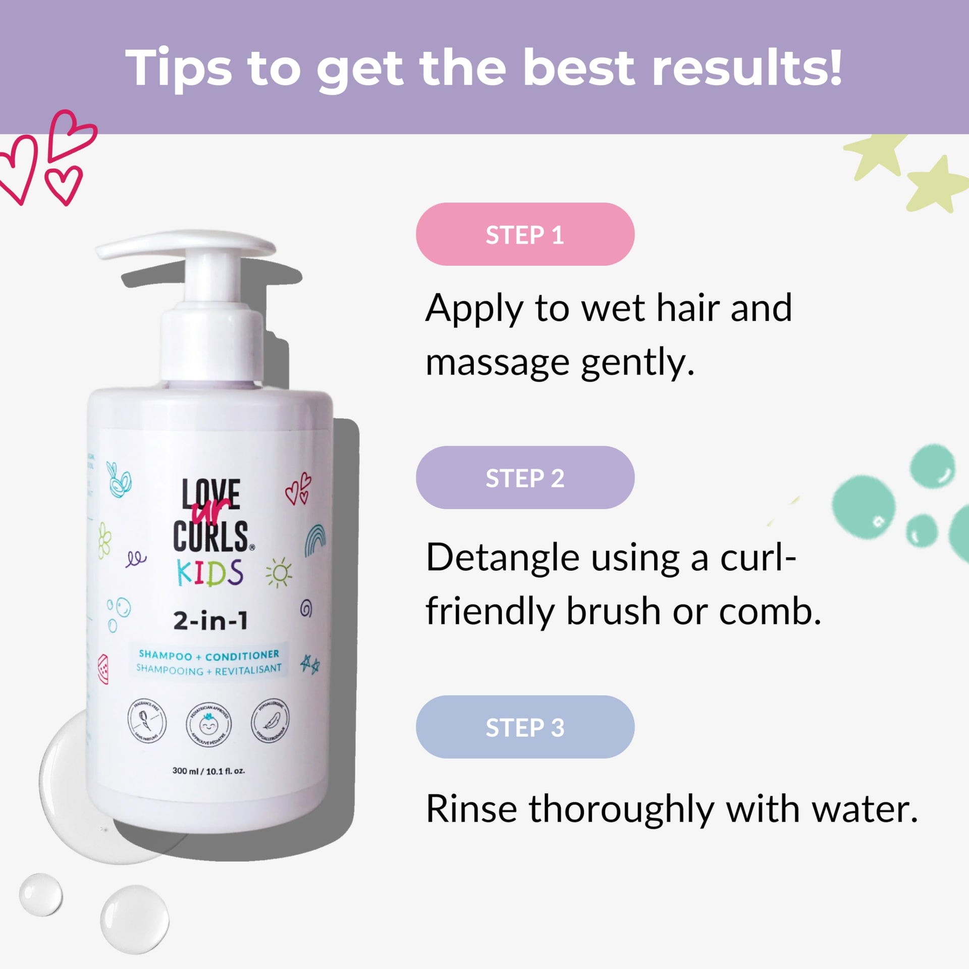 Love Ur Curls Kids 2-in-1 Shampoo & Conditioner | Fragrance-Free, Tear-Free, Gentle Formula | Sulfate & Paraben Free, 300 mL