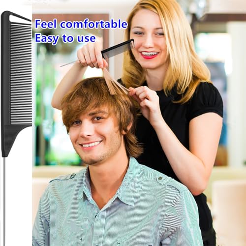 Luumxai 9pcs Topsy Hair Tail Tool & Rat Tail Comb Set with 6pcs French Braiding Rings & 3pcs Metal Parting Combs for Women & Girls (Pink, Purple, Black)