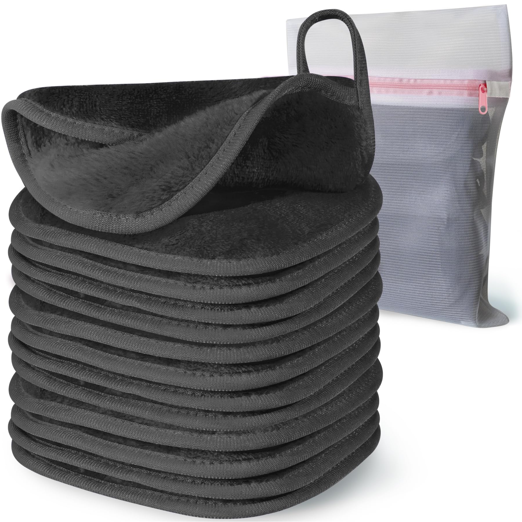 Reusable Makeup Remover Cloths, 12-Pack 6"x6" Microfiber Face Wash Towels with Mesh Bag, Soft & Gentle for Face Cleansing, Grey