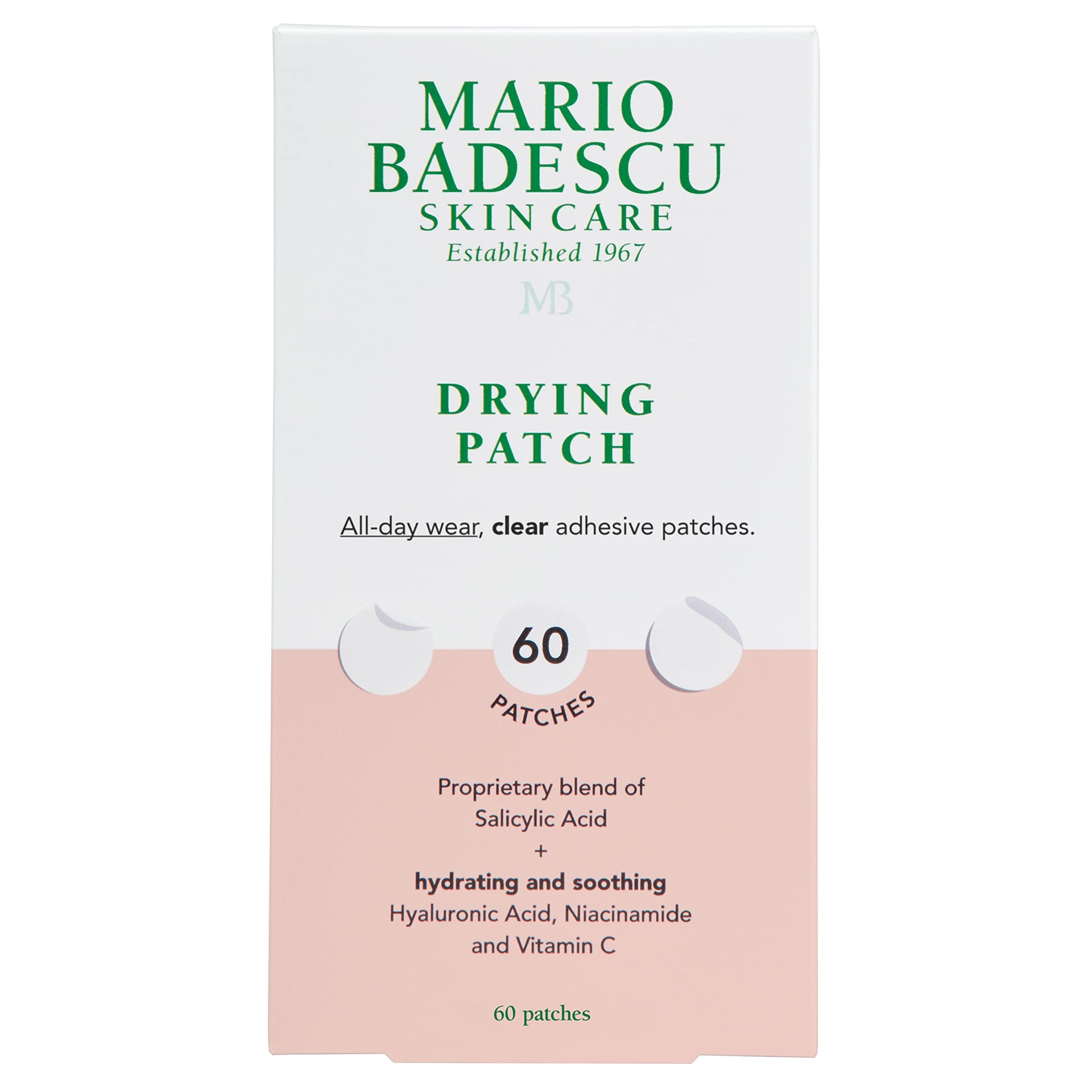 Mario Badescu Drying Patch Blemish Cover, Invisible Spot Treatment with Vitamin C, Strong Hold, Vegan & Cruelty-Free, 60 Clear Patches