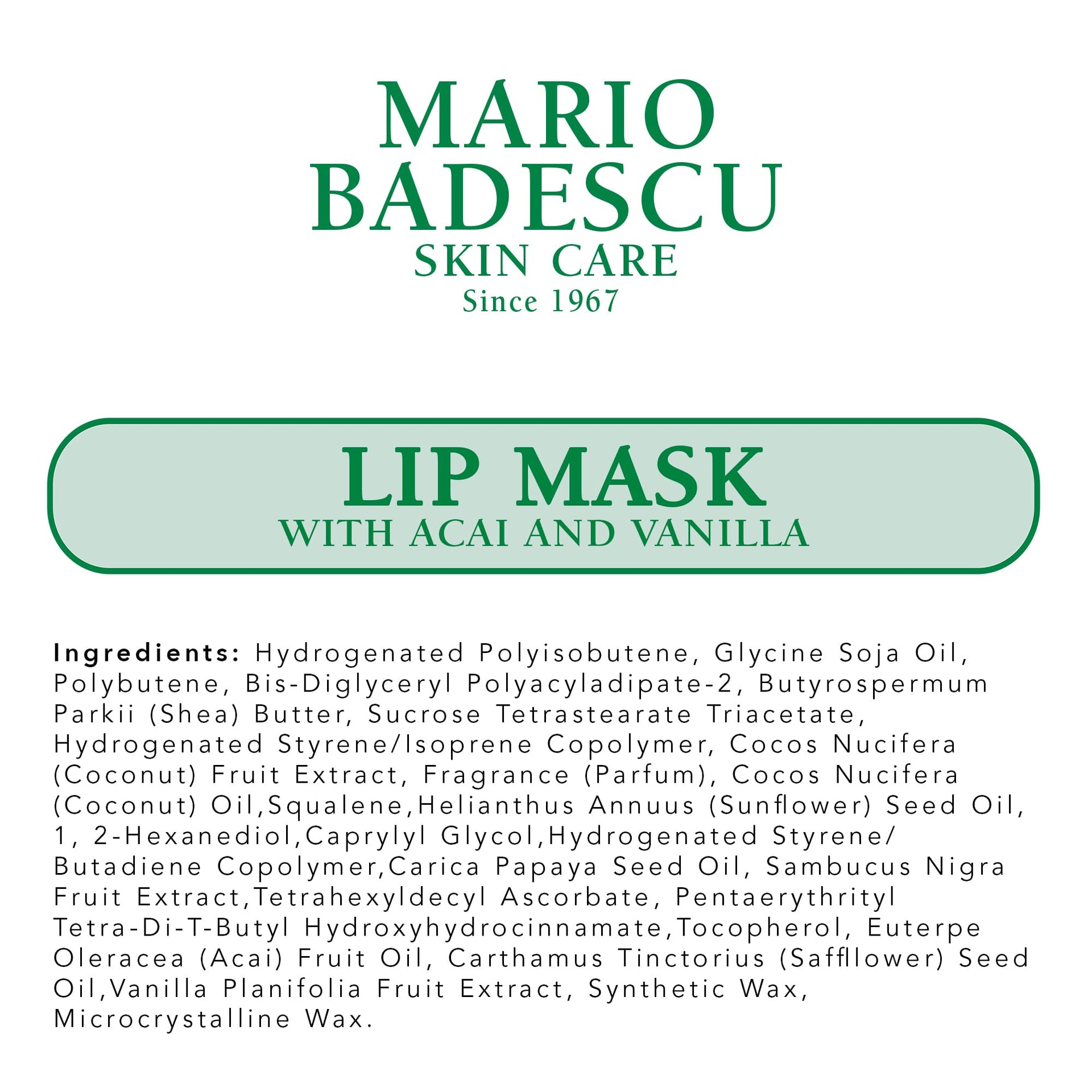 - #MBSKINTIP - Use nightly in combination with Mario Badescu’s Lavender and Vanilla Sleeping Mask as the last steps in your night routine or use it as lip prep before swiping on lipstick